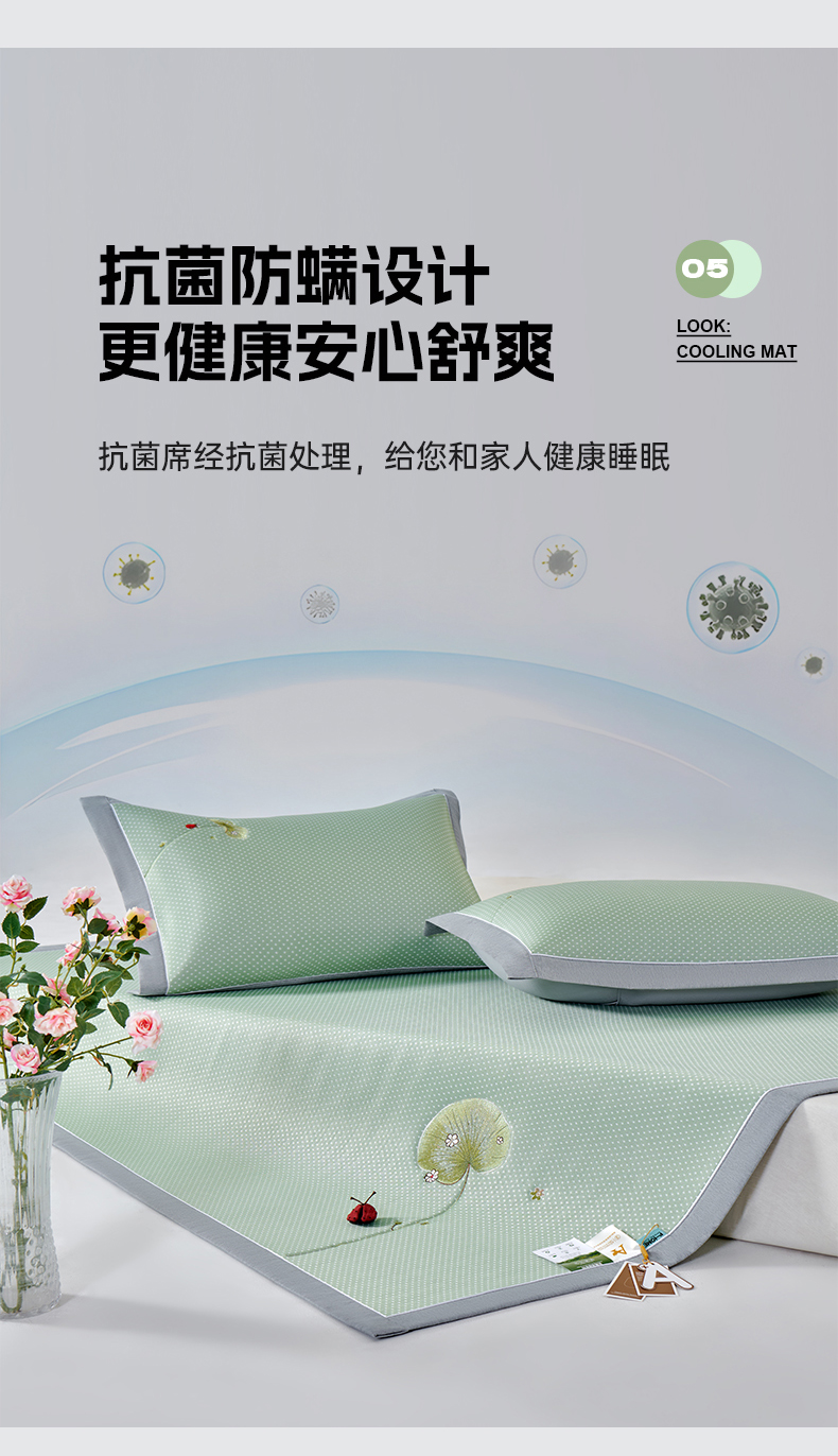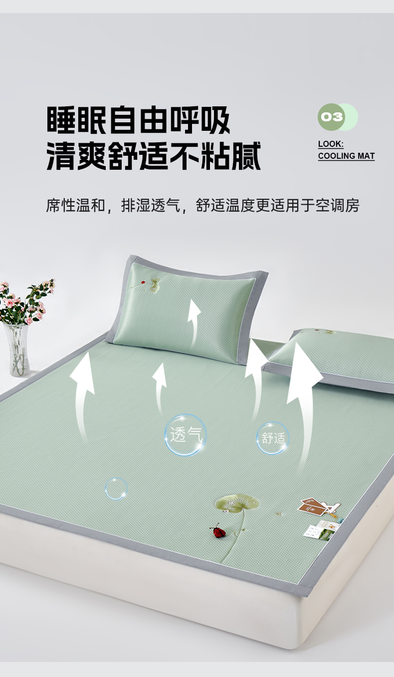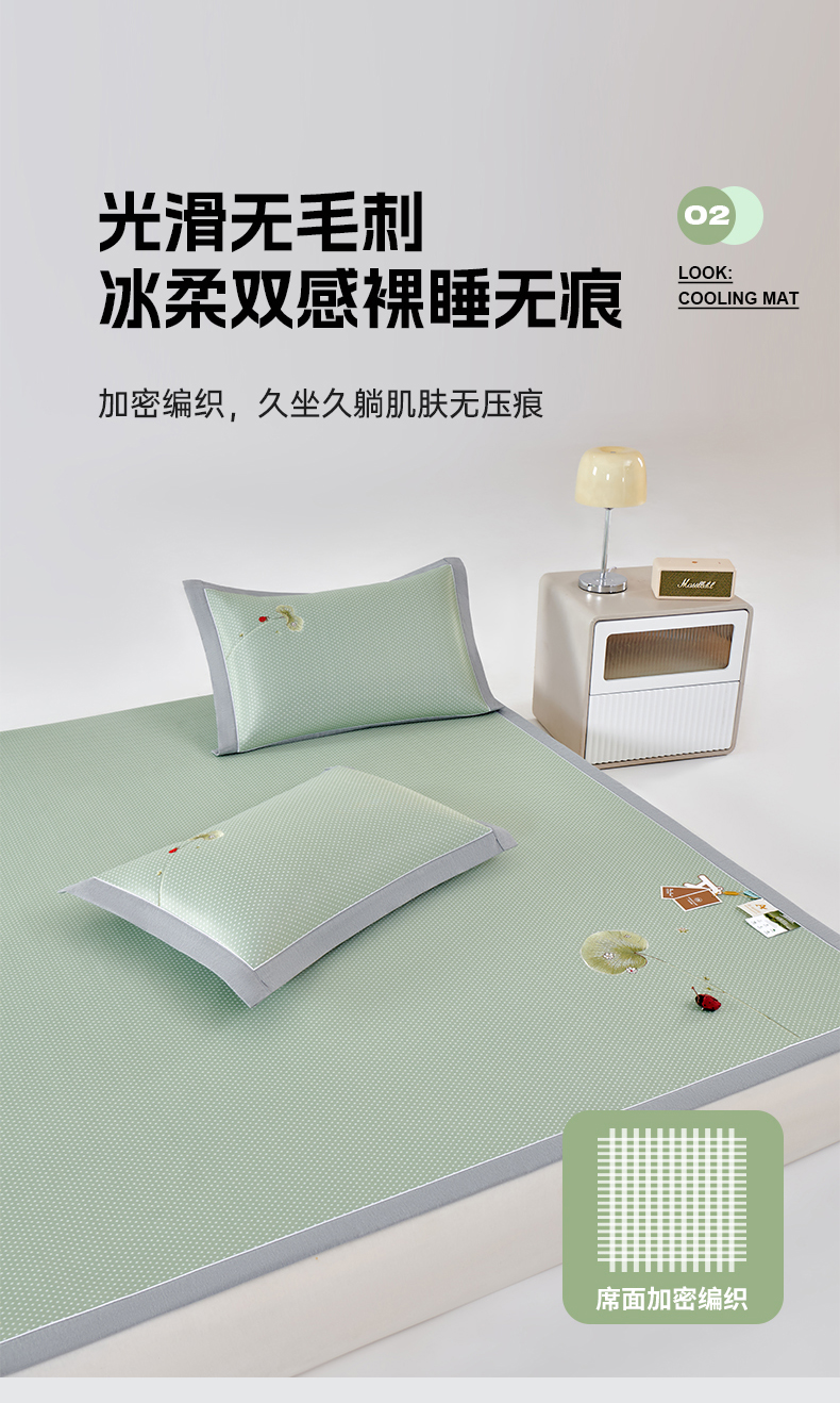 (总)小牛席业 2026新款小冰块大象凉感冰丝席凉席竹席藤席冰藤席乳胶席豆豆席,粉色,香槟,灰色,绿色,蓝色