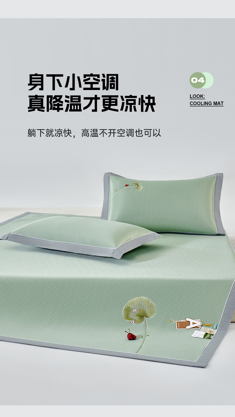 小牛席业 2026新款满天星-夏日荷塘冰丝席凉席藤席草席竹席乳胶席凉感豆豆席 绿色