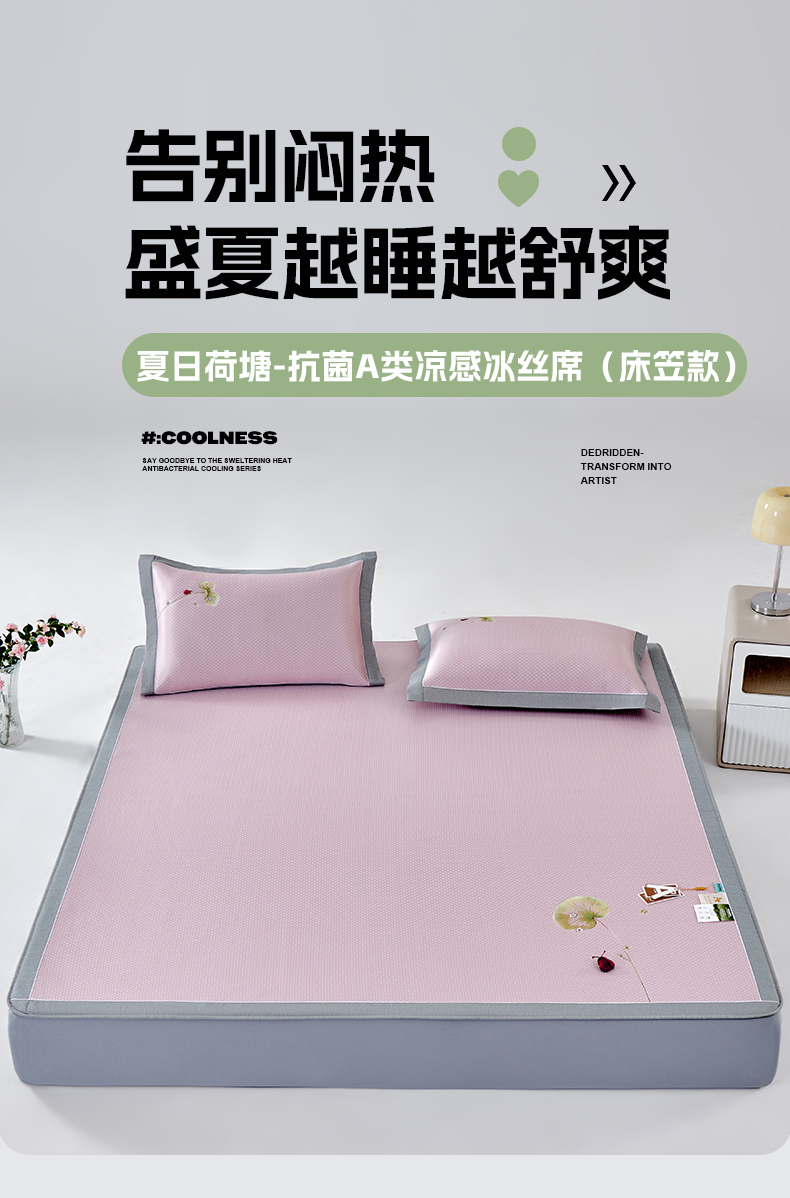 商品名称:小牛席业 2026新款满天星-夏日荷塘冰丝席(床笠款)凉席藤席草席竹席乳胶席凉感豆豆席 粉色