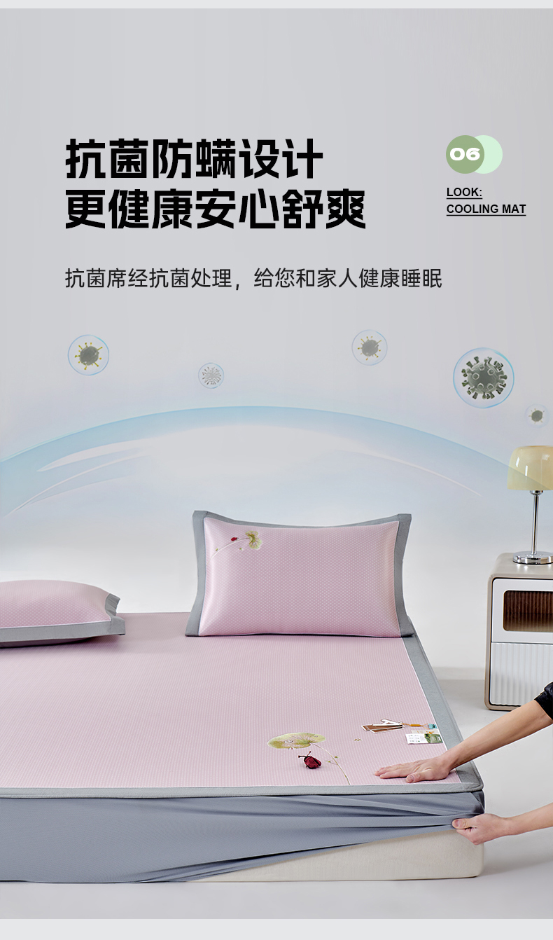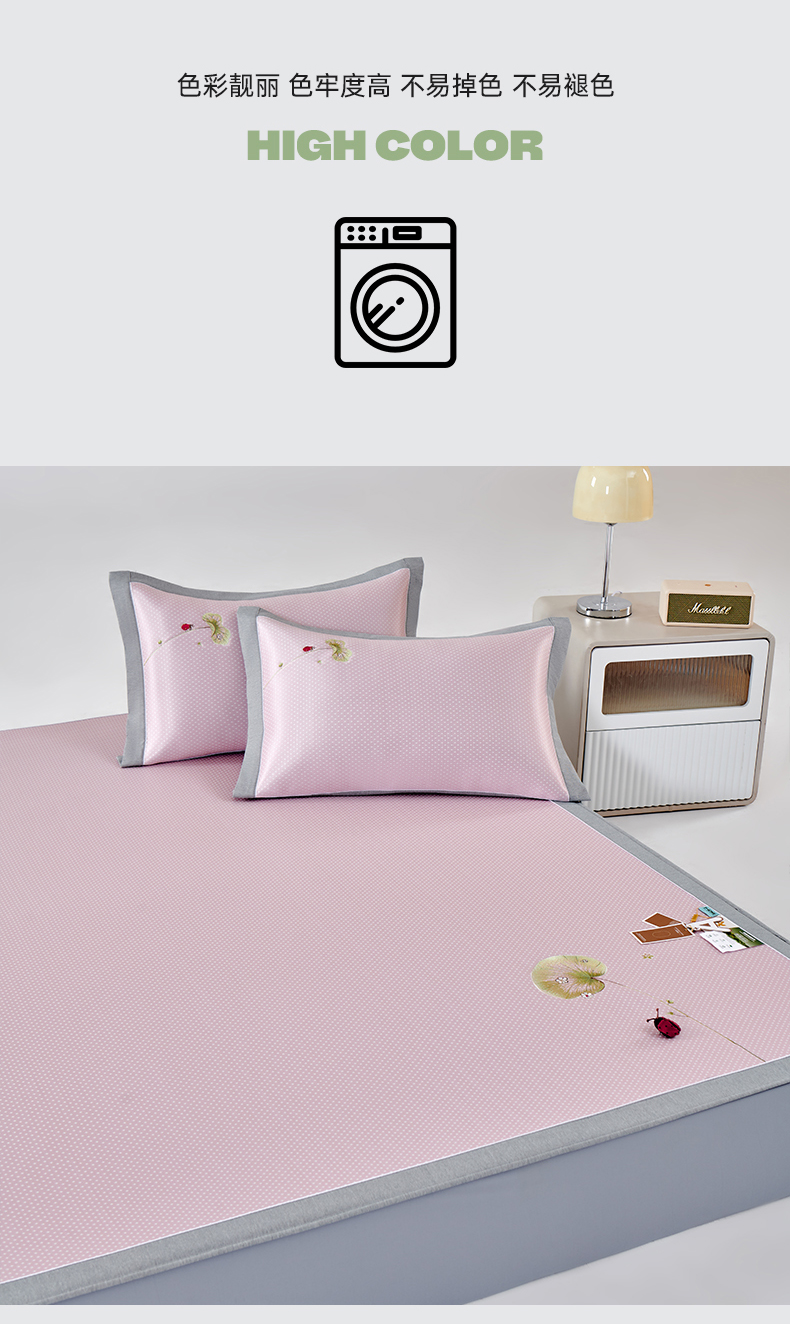 (总)2023新款超精密冰丝席-小斜纹系列-床笠款藤席凉席竹席,粉色,蓝色,绿色,银灰