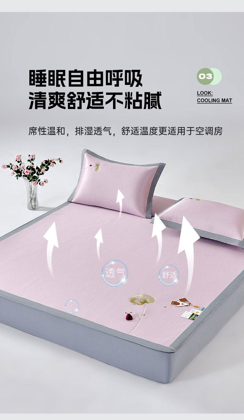 (总)小牛席业 2026新款小冰块大象凉感冰丝席凉席竹席藤席冰藤席乳胶席豆豆席,粉色,香槟,灰色,绿色,蓝色