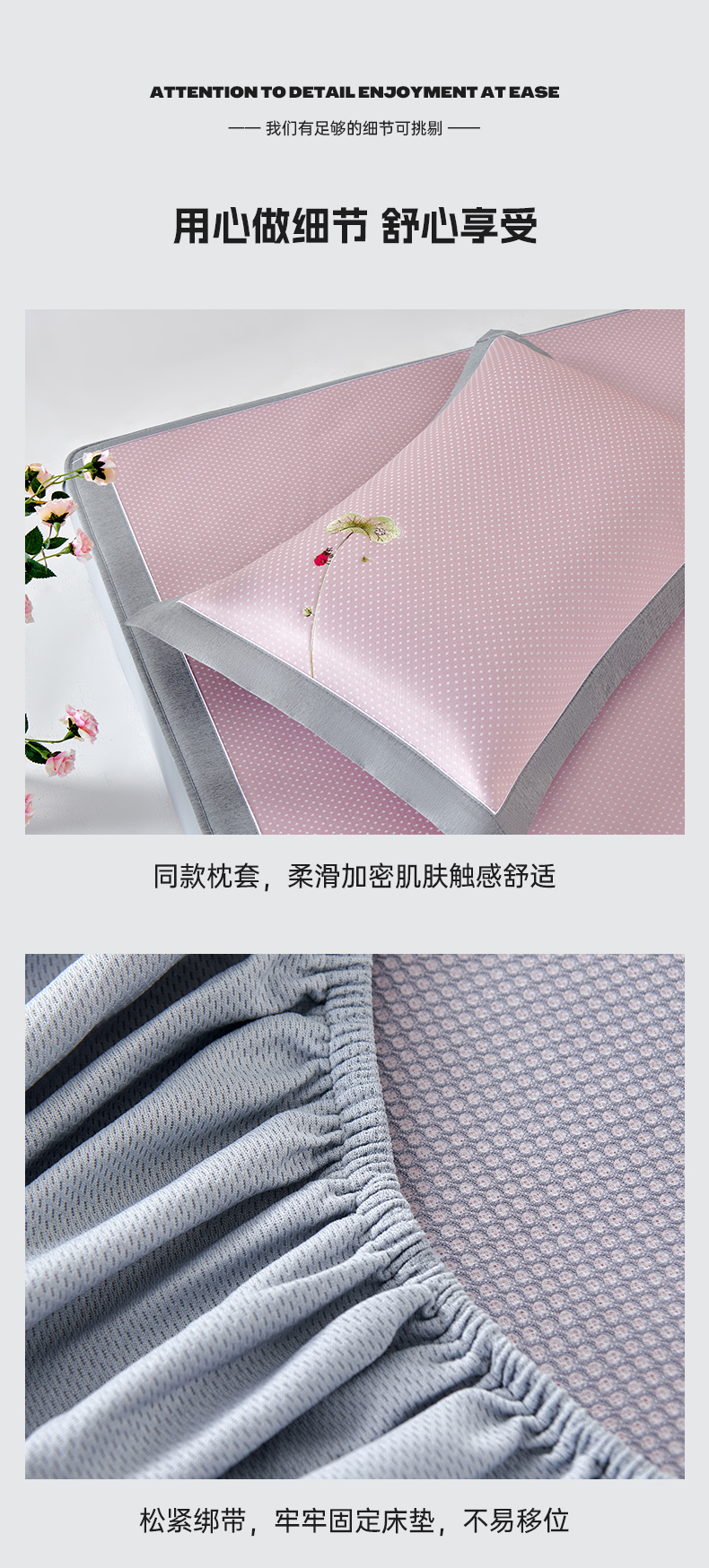 (总)小牛席业 2026新款【实拍风格】双PE高凉感-迪恩玫瑰提花冰丝席(床笠款)凉席竹席藤席冰藤席乳胶席豆豆席,粉色,灰色,蓝色,香槟