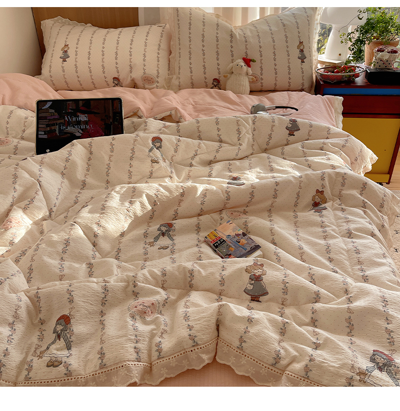 梵克保罗 2026春夏新款全棉纯棉花边皱皱纱单夏被夏凉被空调被夏被四件套 草木灰序