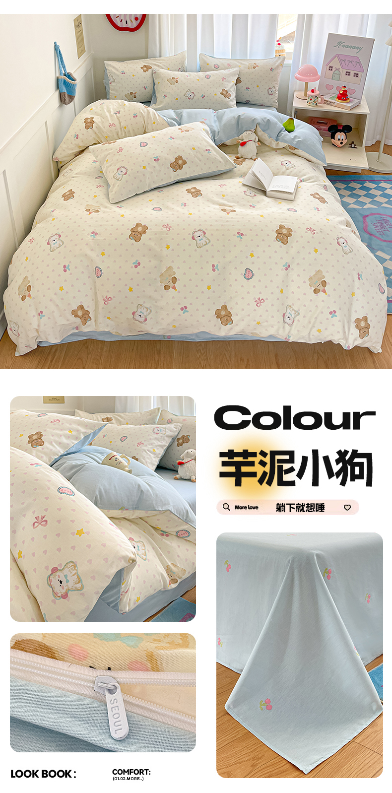 (总)首尔家纺 2026新款全棉纯棉小清新四件套,豹纹小熊,比格熊,波点蝴蝶结,丰收季节,果酱电台,蓝点豹纹,乐遥,玫瑰兔语,奶呼兔兔-米,盼夏少女,森遥,时尚恐龙,水墨嫣然,甜心可宠,香浮花月,小熊哈尼,芋泥小狗,月下小兔,中古小花熊