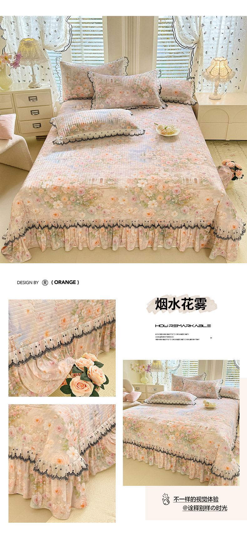 • 91家纺网 家纺一手货源 找家纺 绒世界 2026新款凉感丝夹棉床盖款三件套 花团锦簇
