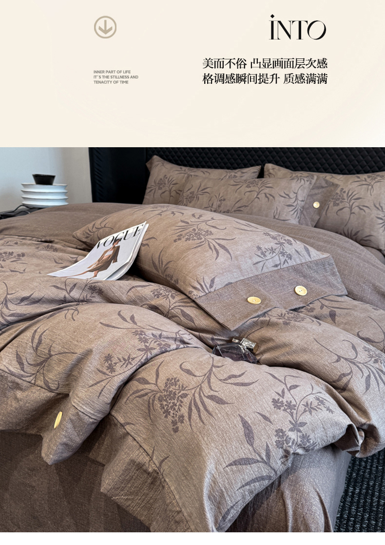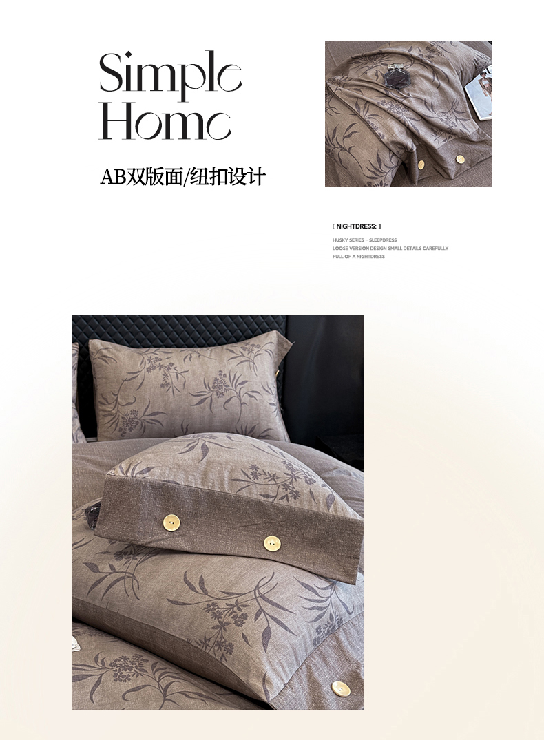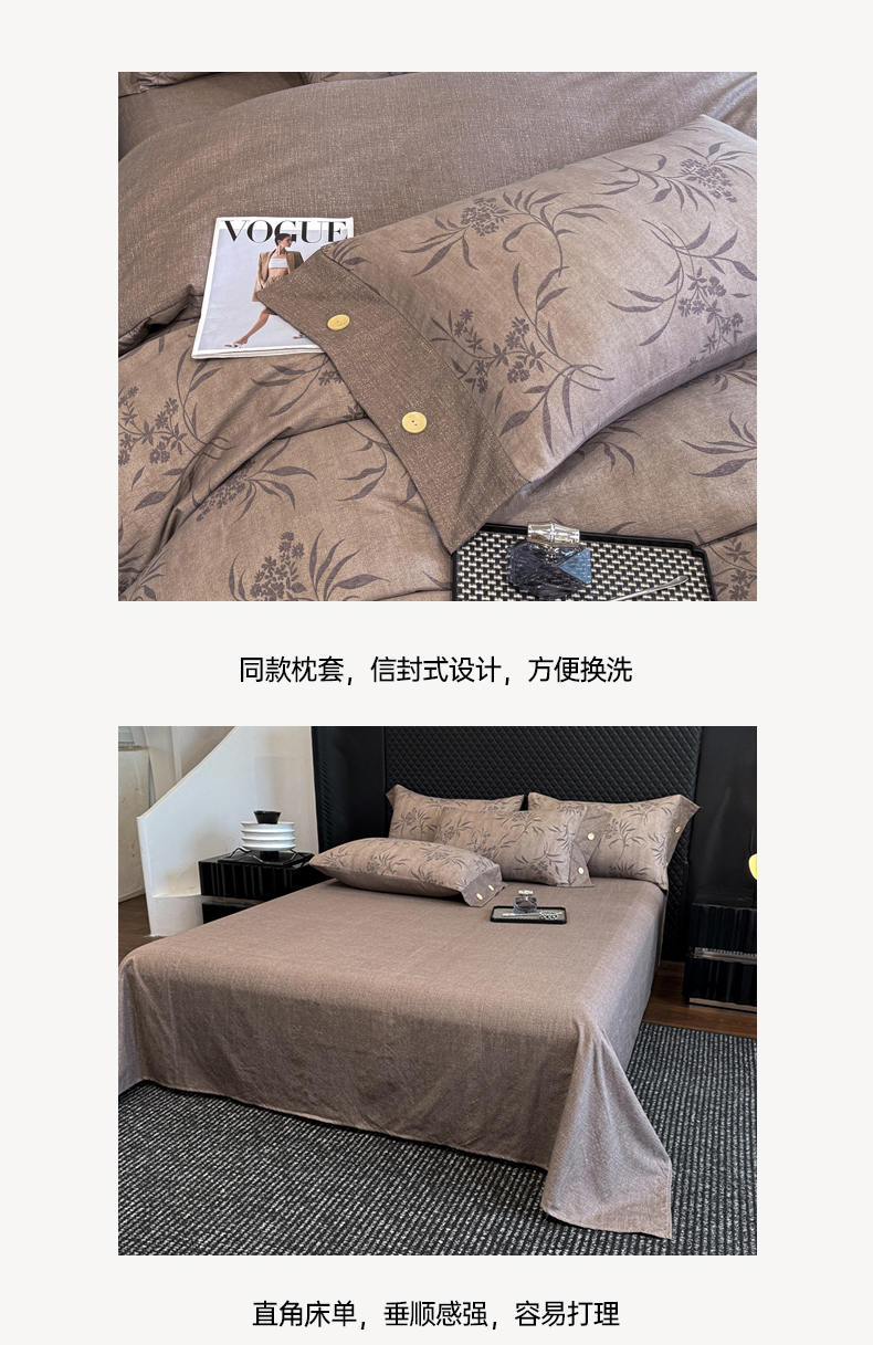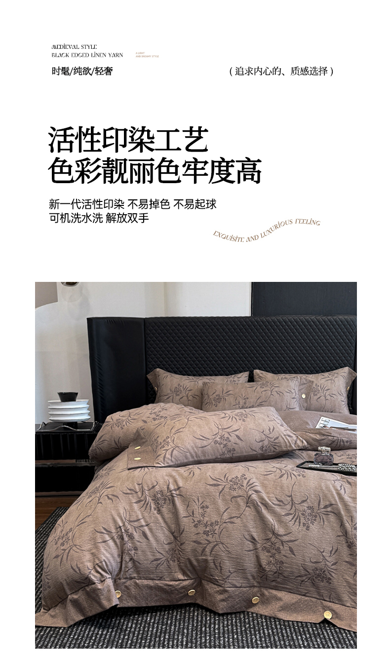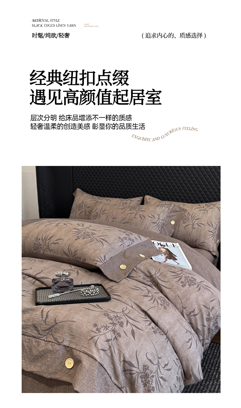 当前位置: 91家纺网 > 商品网购 > 床品套件 > 四件套 > 其它四件套 > 晚爱家纺(原晚安家居) 2026新款加厚双层纱原麻纽扣款四件套 深秋咖