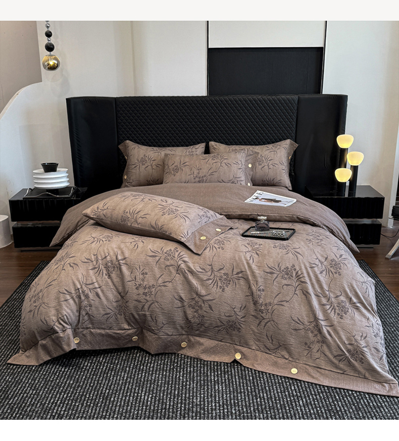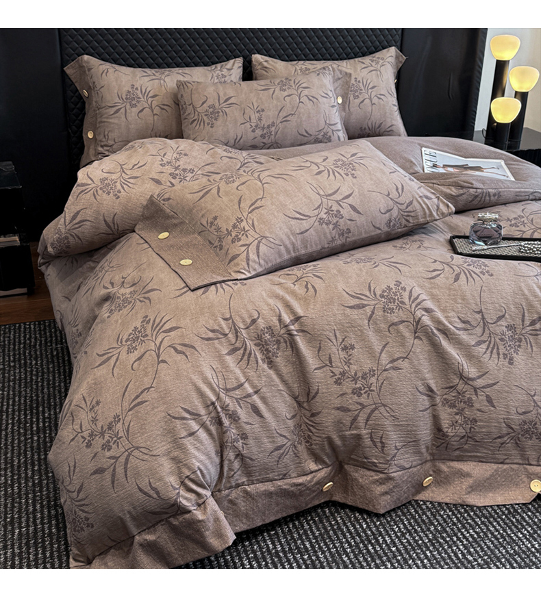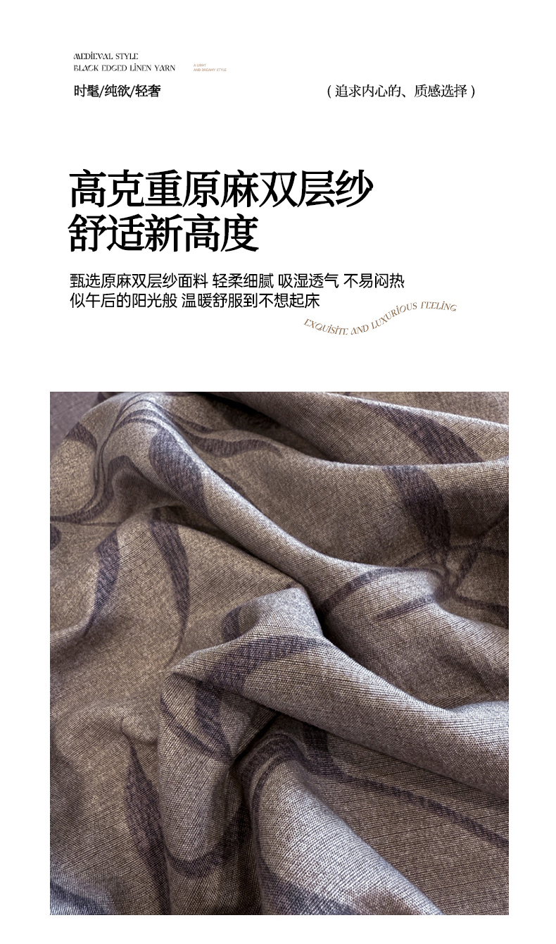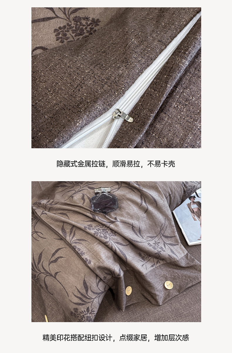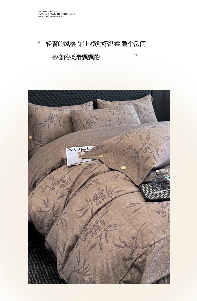 当前位置: 91家纺网 > 商品网购 > 床品套件 > 四件套 > 其它四件套 > 晚爱家纺(原晚安家居) 2026新款加厚双层纱原麻纽扣款四件套 深秋咖