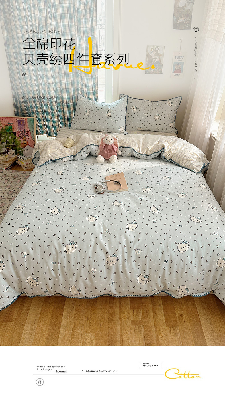 当前位置: 91家纺网 > 商品网购 > 床品套件 > 四件套 > 全棉普通四件套 > 瑞莱 (持续上新)2026新款全棉纯棉印花贝壳边四件套 蓝调豹纹喵