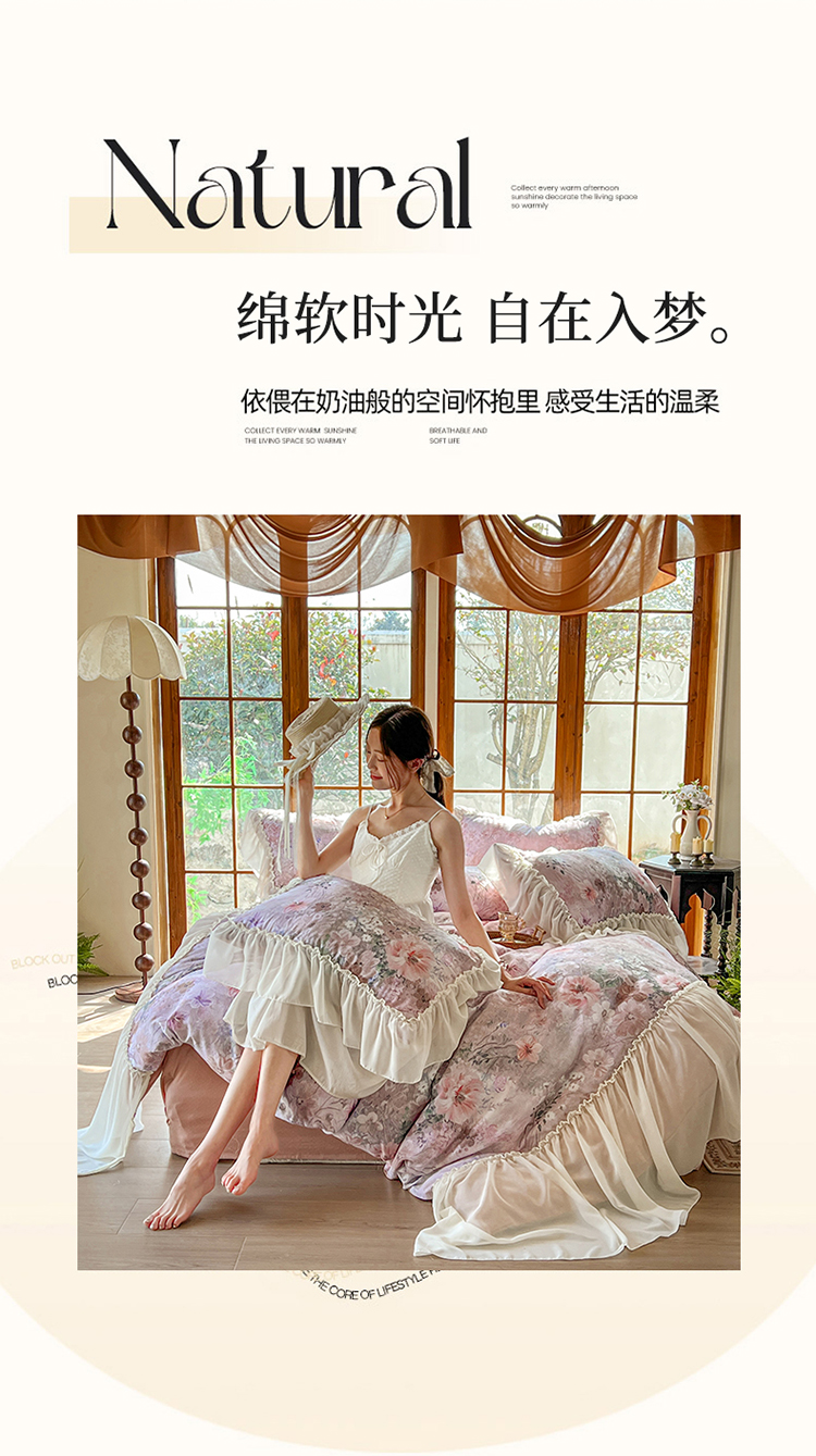 当前位置: 91家纺网 > 商品网购 > 床品套件 > 四件套 > 全棉普通四件套 > 疆东 2026高端韩版法式公主复古油画风纯棉双层纱四件套赫本浪漫荷叶花边仙女全棉双层纱四件套床上用品被套 莫奈花园