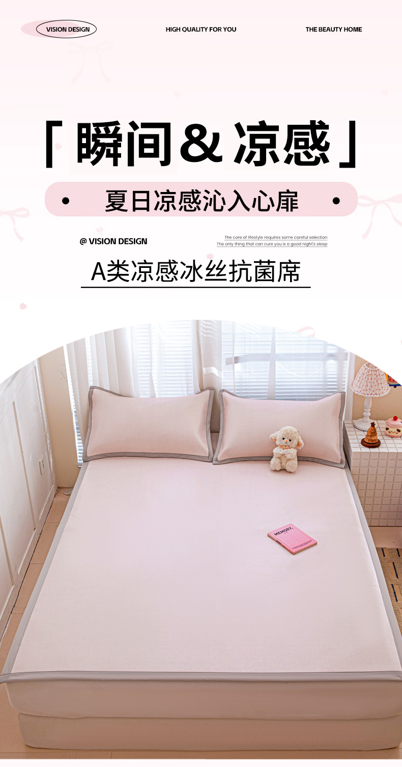 当前位置: 91家纺网 > 商品网购 > 床上用品 > 凉席 > 冰丝席 > 富馨莱 2026新款冰丝凉席平铺款支持一件定制定做 淡雅粉