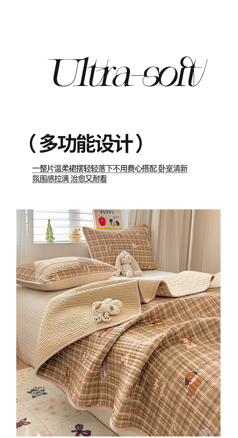(总)雅萱家纺 2026新款森系全棉夹棉印花床盖,豹纹小狗,橙意满满,蛋糕熊仔,动物园,格纹萌犬,花丛小熊,简约时代,焦糖腊肠犬,咖啡小熊,洛克花园,墨兰樱桃,奶油兔叽,色块絮语,绅士狗,松鼠乐园,桃气修狗,兔彼得,夏日小黄花,仙草兔,心意满满,星星小象,樱桃小狗,郁金香狗