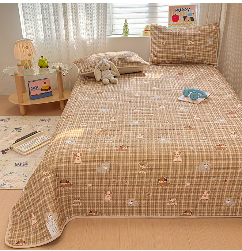 • 91家纺网 家纺一手货源 找家纺 雅萱家纺 2026新款森系全棉夹棉印花床盖 绅士狗