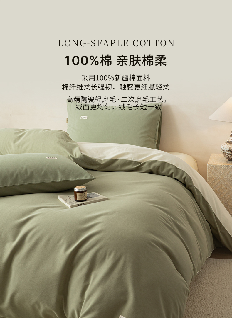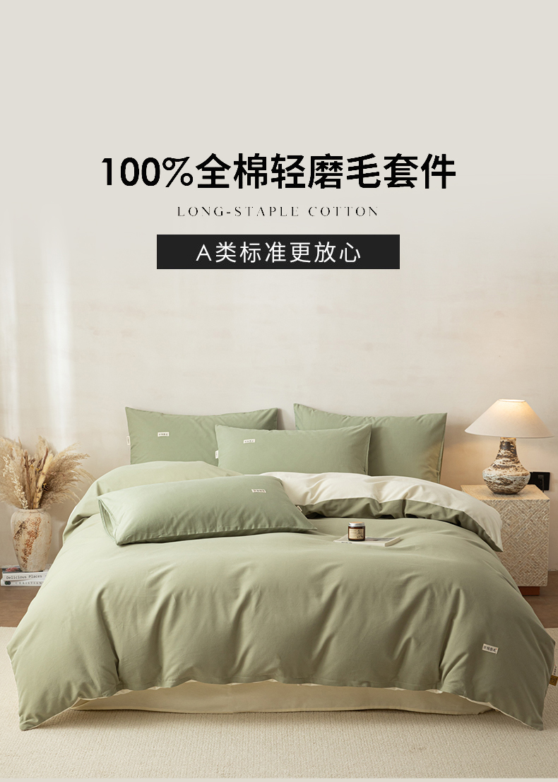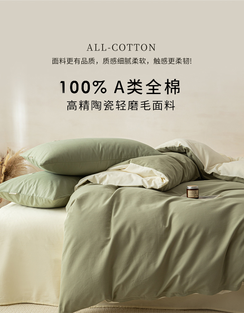 当前位置: 91家纺网 > 商品网购 > 床品套件 > 四件套 > 全棉普通四件套 > 眠博士 2026新款A类纯色全棉磨毛四件套-陶瓷 套件-陶瓷草绿+奶白