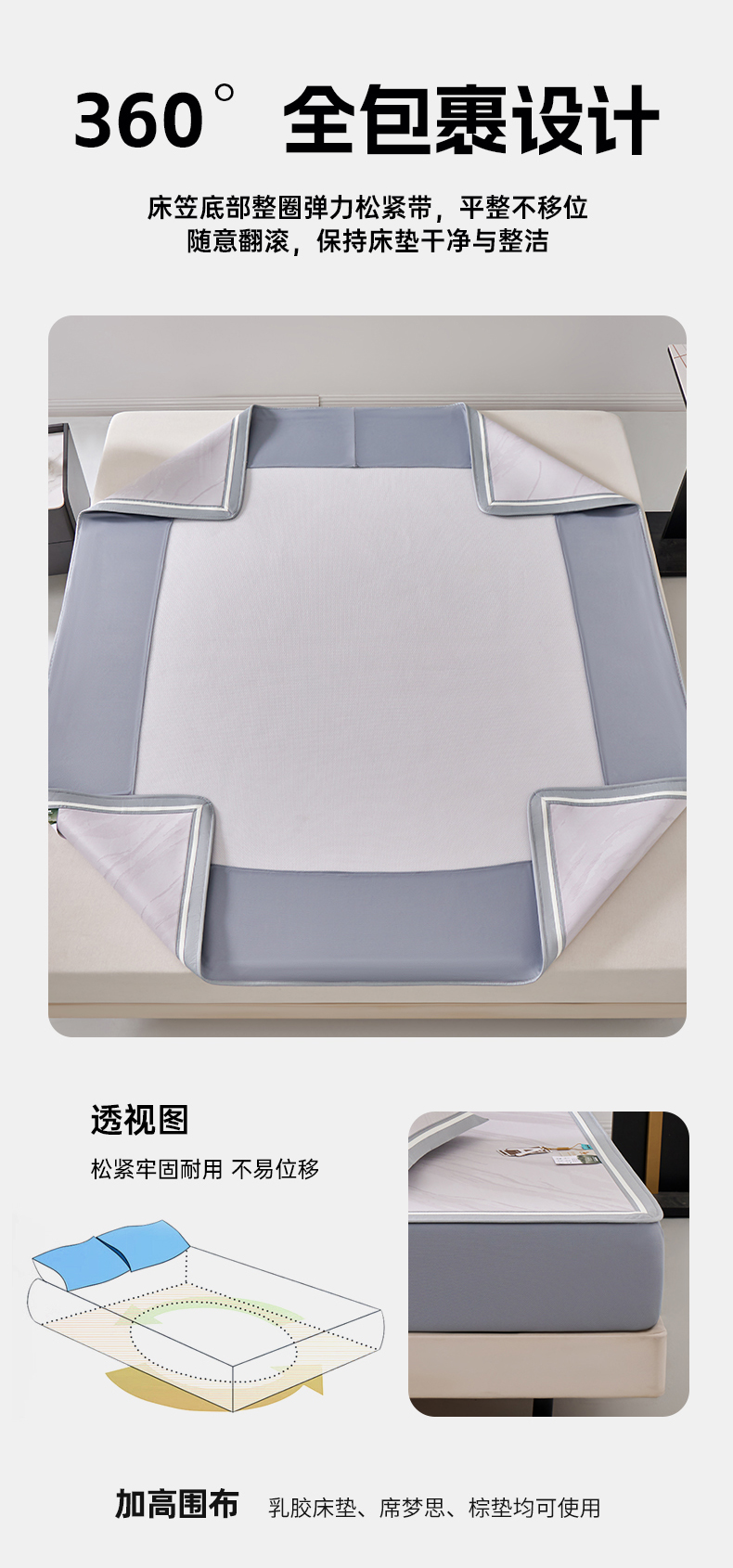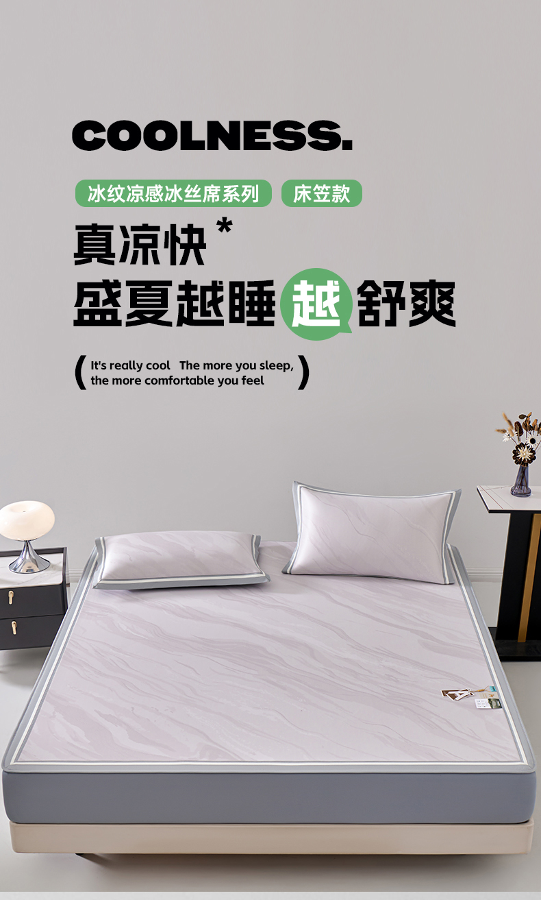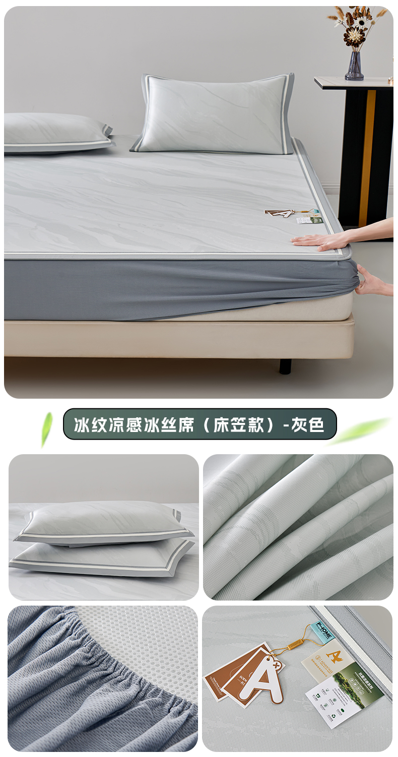 (总)小牛席业 2026春夏新款【实拍风格】PE凉感凉席席子-轻奢赫本(床笠款),轻奢赫本-灰色,轻奢赫本-粉色,轻奢赫本-蓝色,轻奢赫本-香槟
