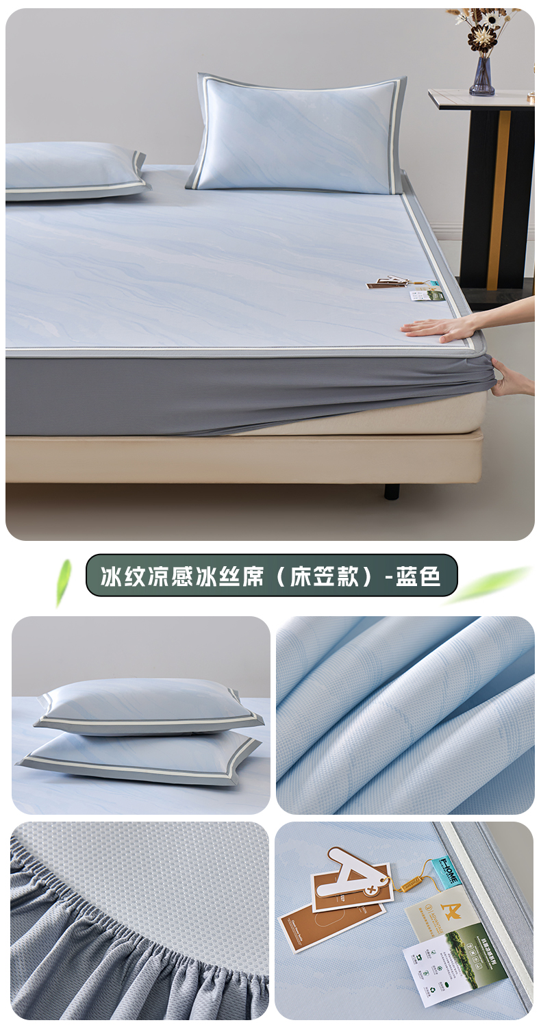 (总)2023新款超精密冰丝席-小斜纹系列-床笠款藤席凉席竹席,粉色,蓝色,绿色,银灰
