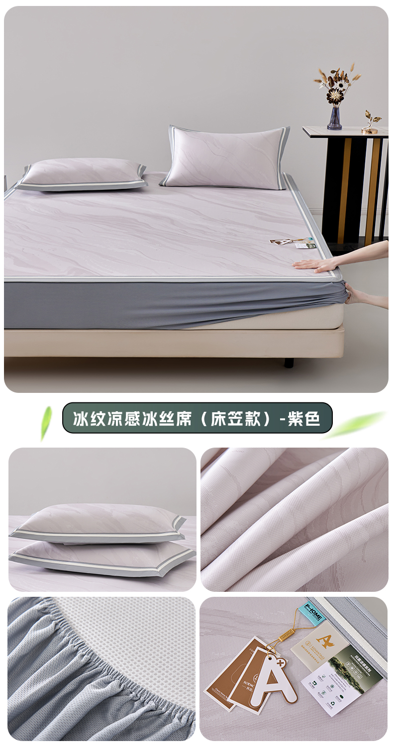 商品名称:小牛席业 2026新款冰纹凉感冰丝席席子凉席-床笠款 浅紫