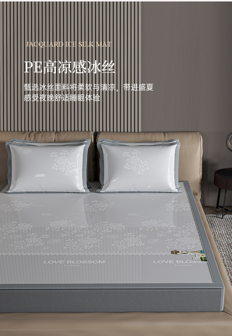 (总)小牛席业 2026春夏新款【实拍风格】PE凉感小碎花提花冰丝席,灰色,粉色,蓝色,抹茶,香槟