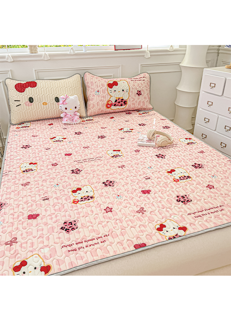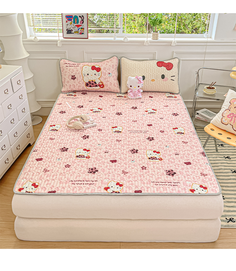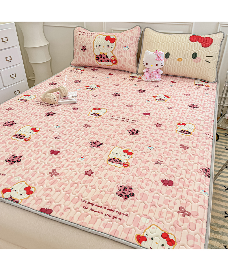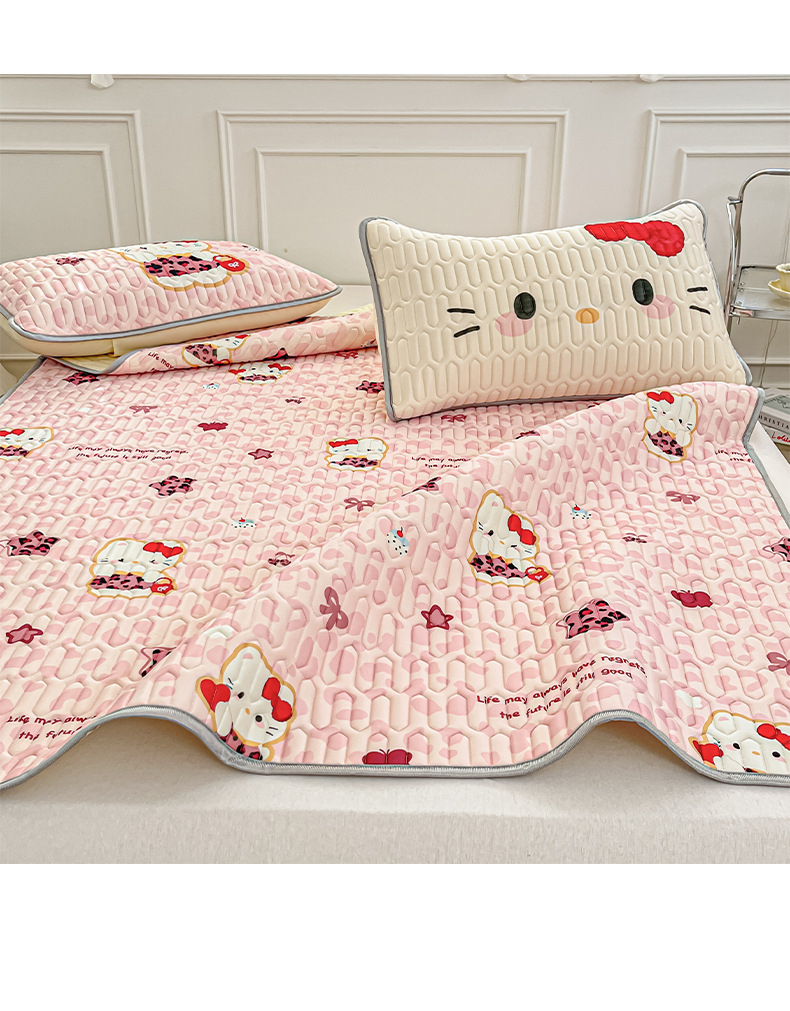 商品名称:摩妮卡 2026新款数码大版小清新乳胶凉席床席款三件套-场景一 趣巧小猫咪-粉