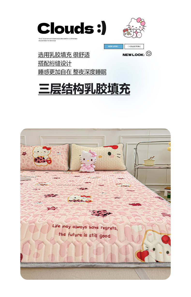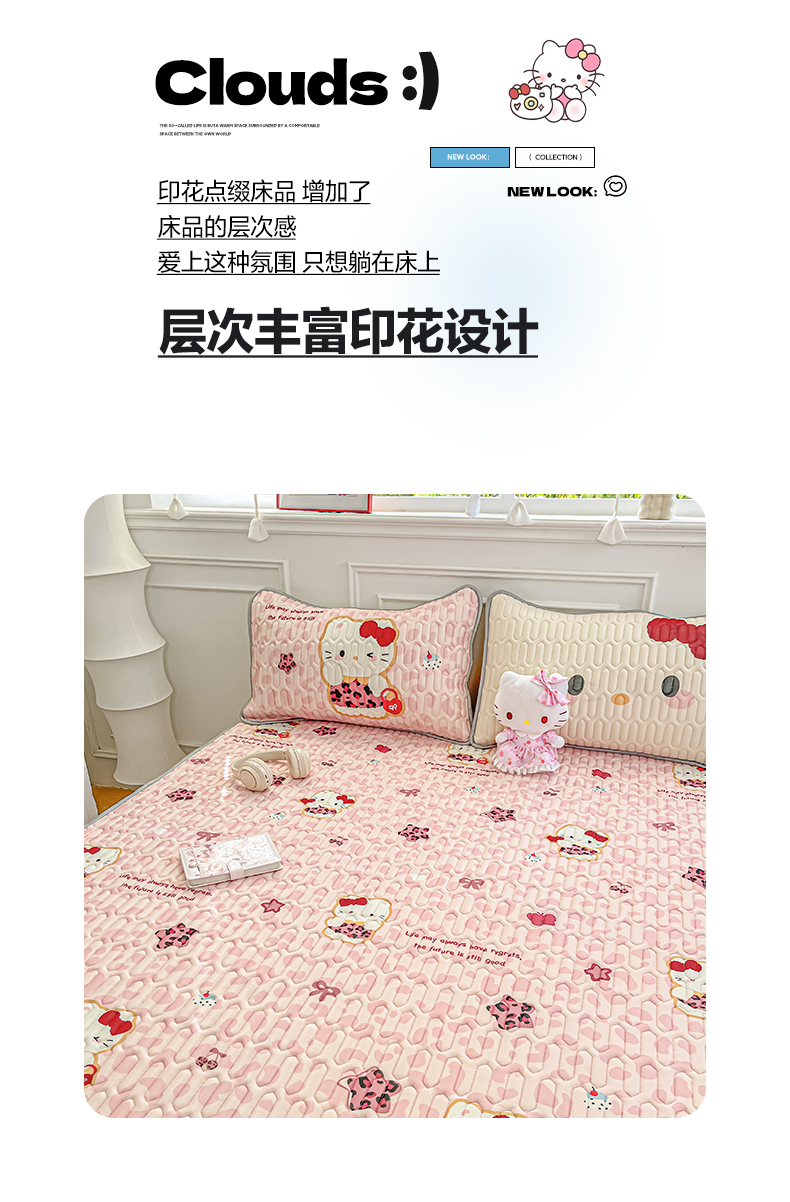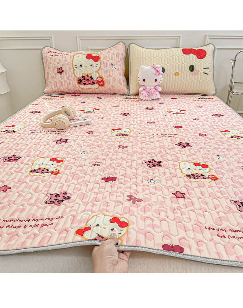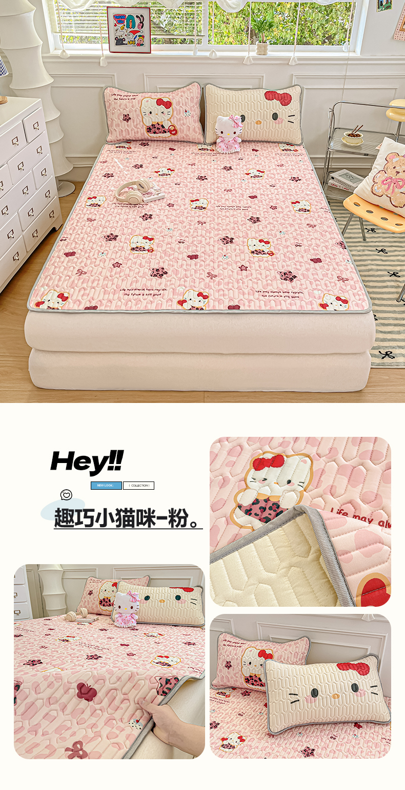 商品名称:摩妮卡 2026新款数码大版小清新乳胶凉席床席款三件套-场景一 趣巧小猫咪-粉
