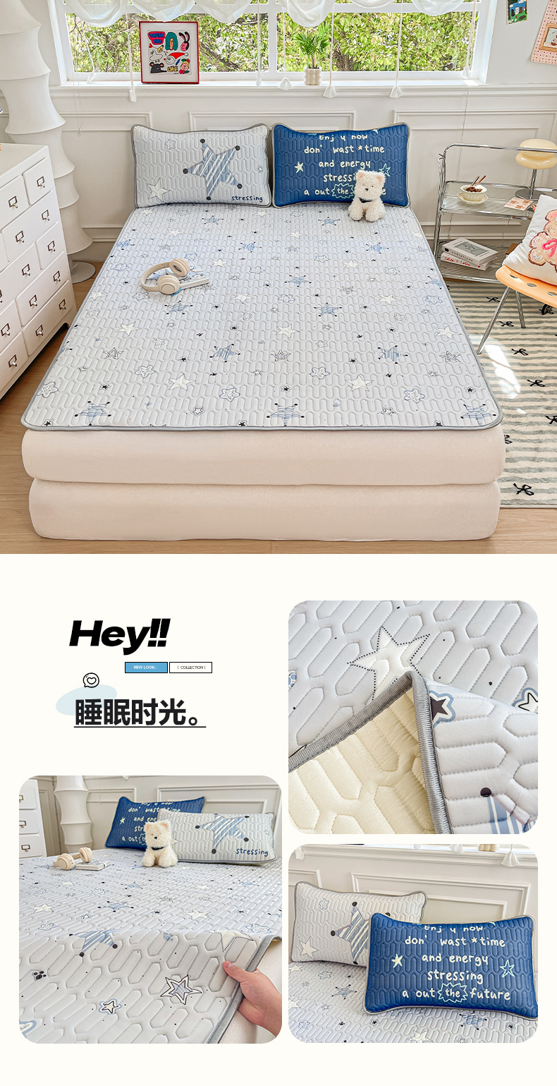 (总)摩妮卡 2026新款水洗棉夹棉防水床褥床垫款三件套,几何-卡其,几何-奶白,几何-浅粉,几何-天蓝