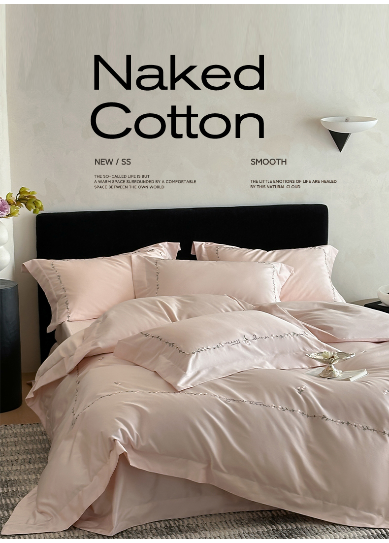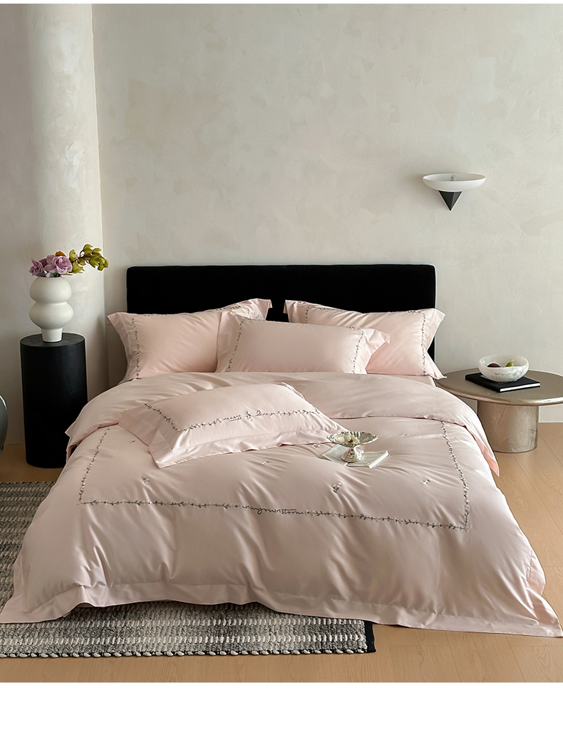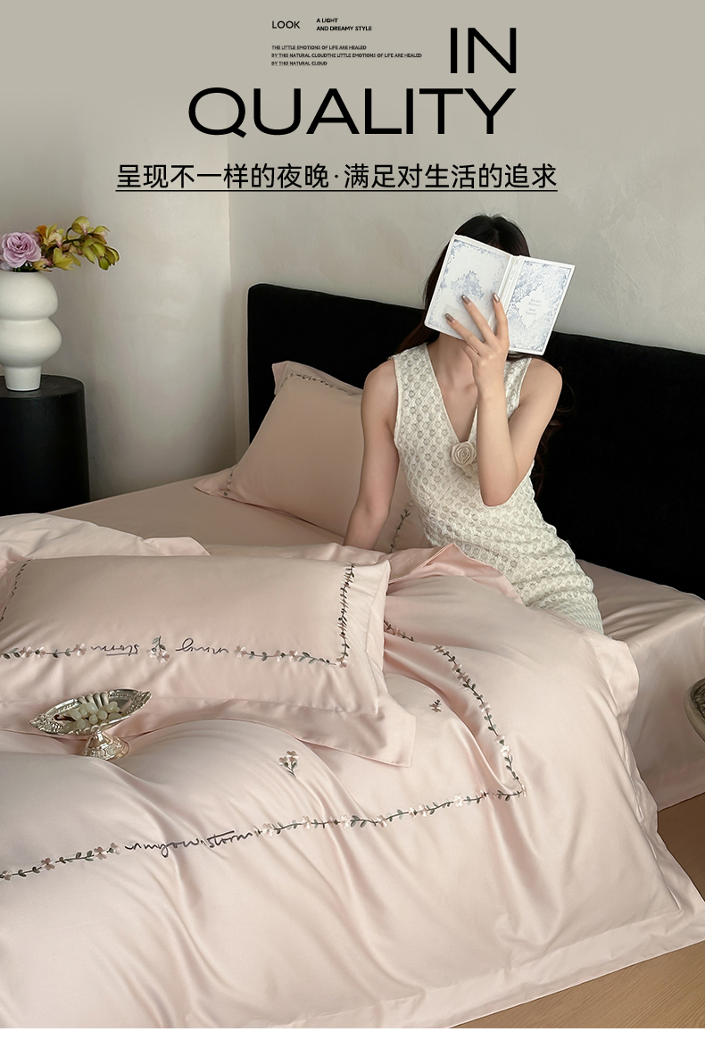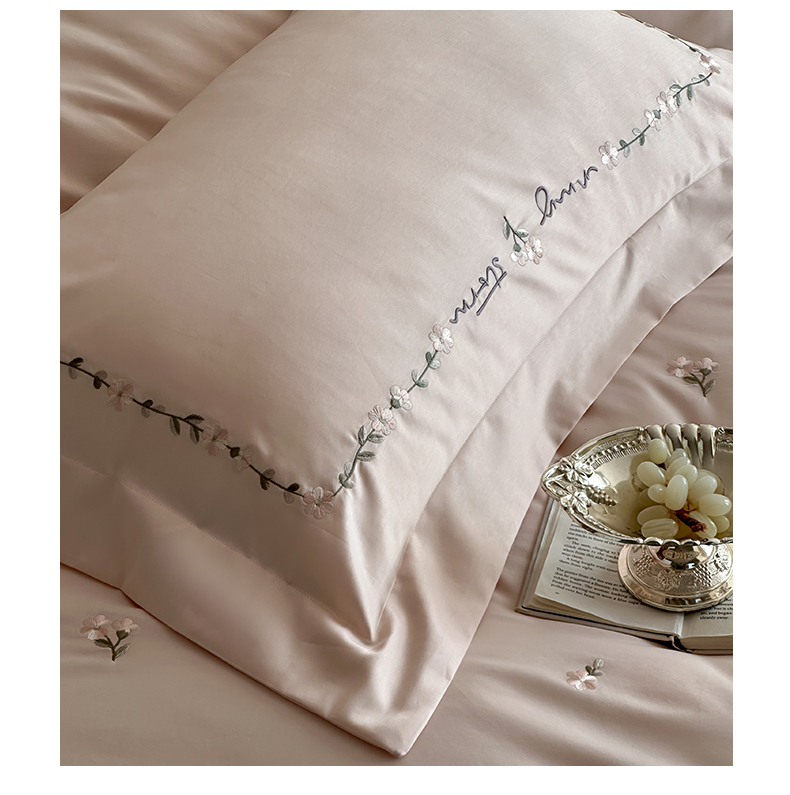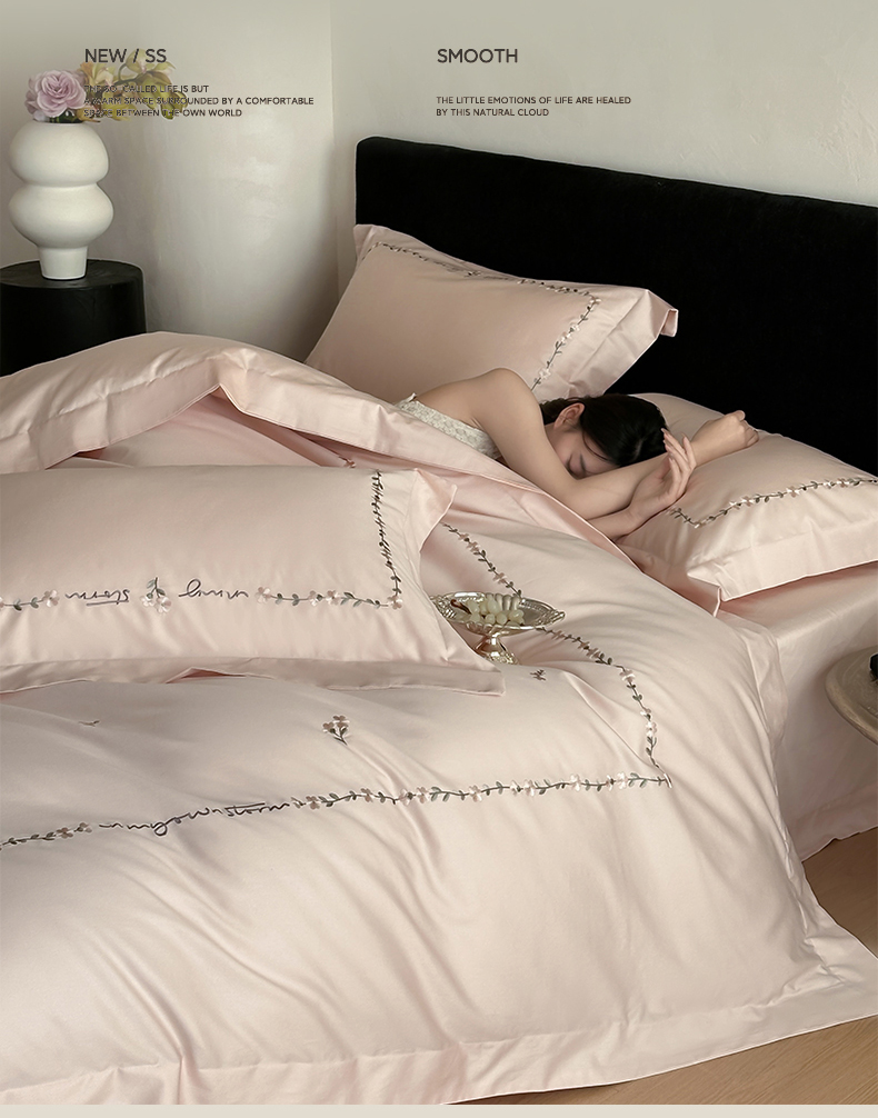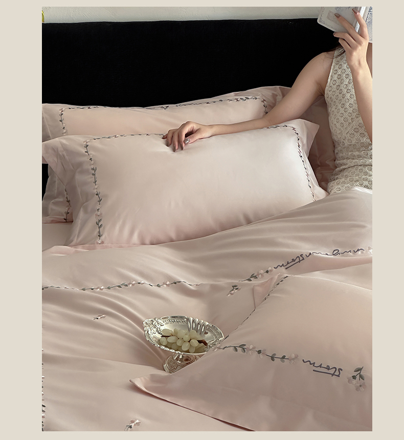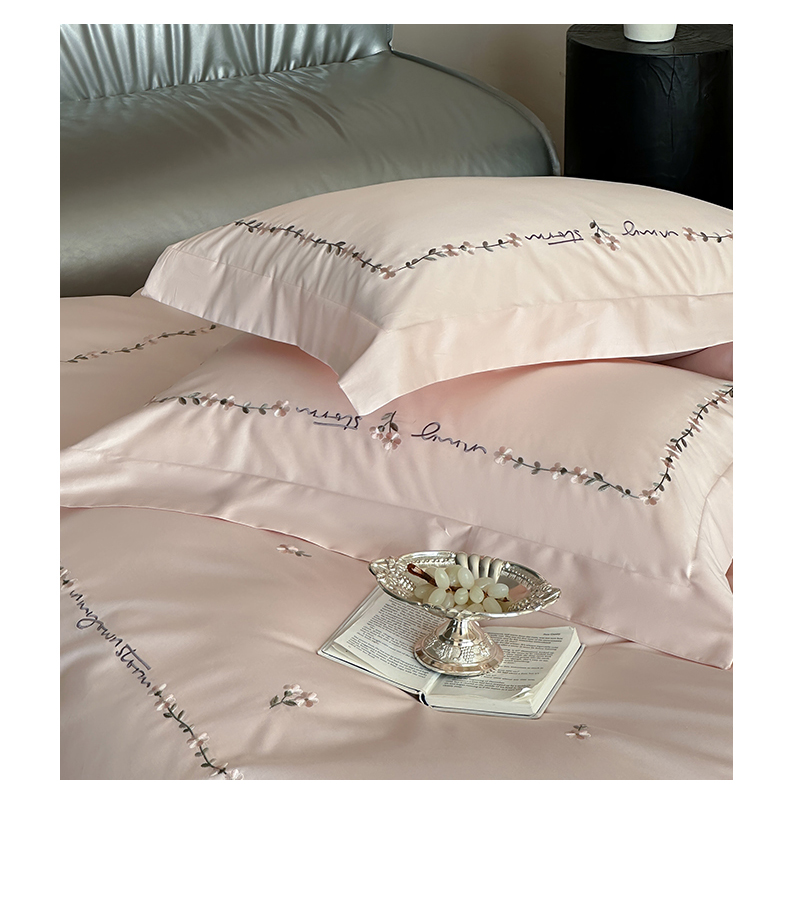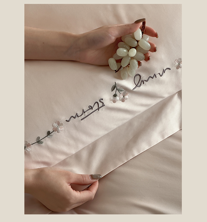 商品名称:名品优仓 2026新款长绒棉50s全棉纯棉刺绣宽边款四件套-花园密语 花园蜜语-初恋粉
