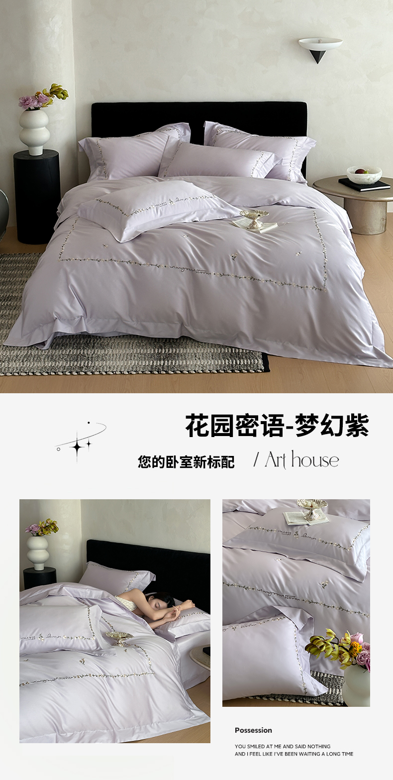 (总)名品优仓 2026新款长绒棉50s全棉纯棉刺绣宽边款四件套-花园密语,组合图仅做展示不可下单,花园密语-梦幻紫,花园蜜语-初恋粉,花园蜜语-奶芋色,花园蜜语-清新绿