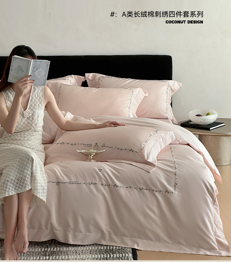 (总)名品优仓 2026新款长绒棉50s全棉纯棉刺绣宽边款四件套-花栖,花栖-公主粉,花栖-梦幻紫,花栖-浅妃灰,花栖-浅云蓝,花栖-清新绿,花栖-肉肉粉