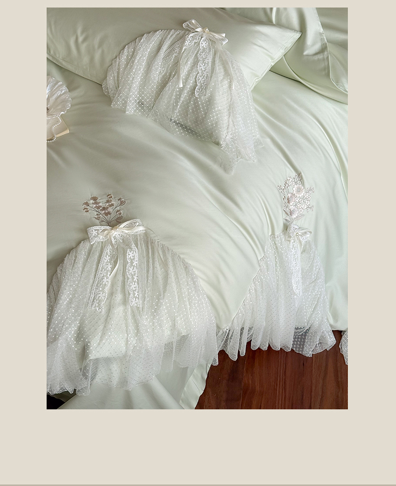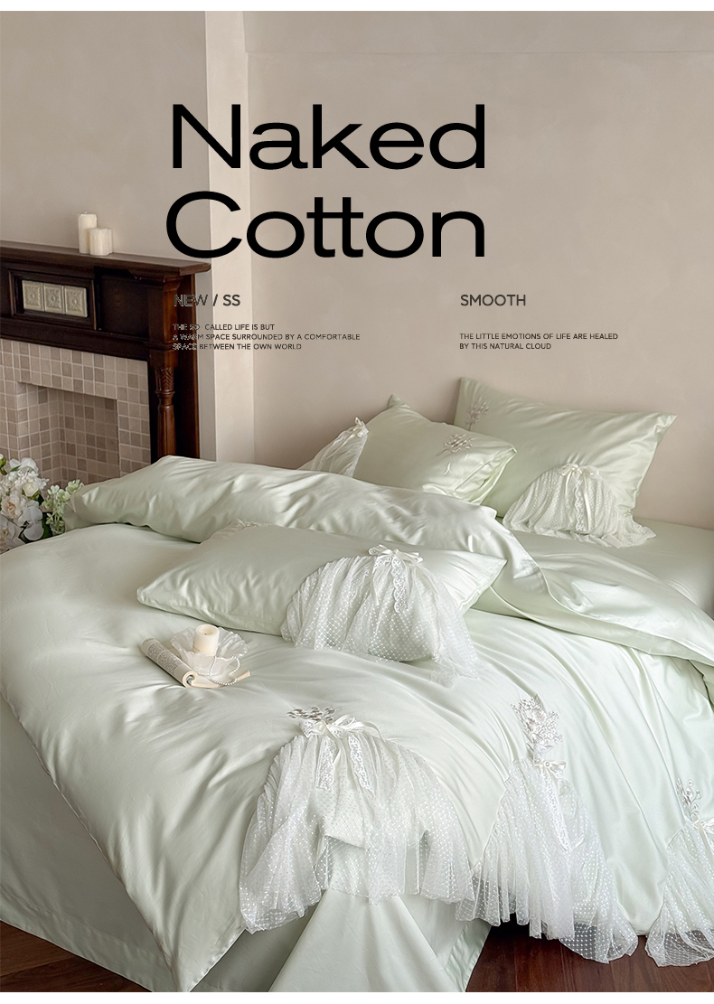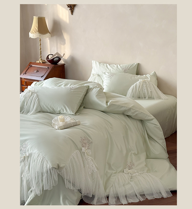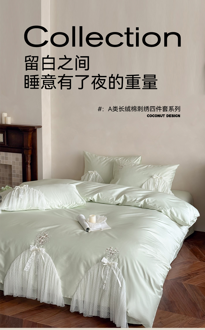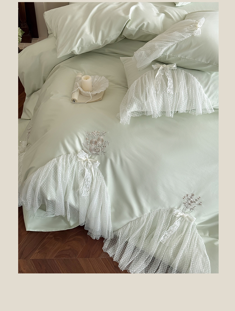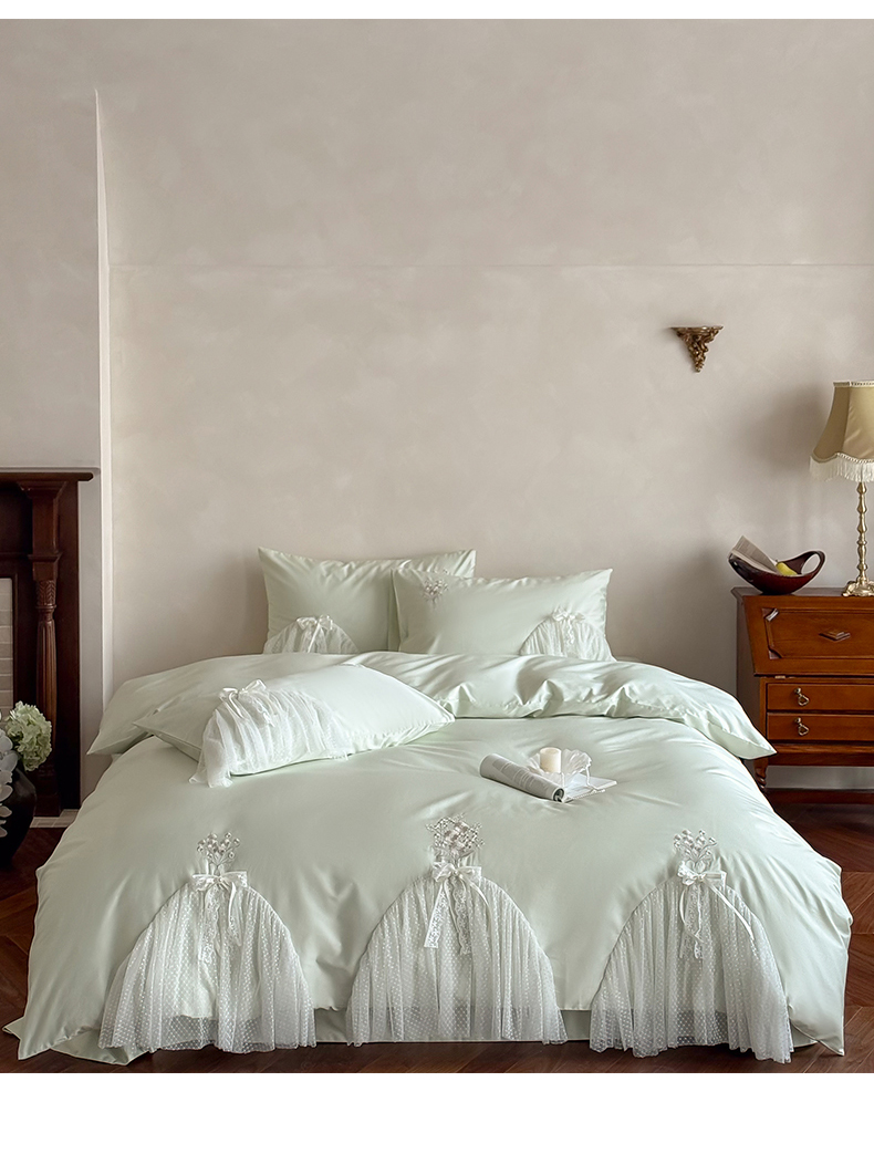 名品优仓 2026新款长绒棉50s全棉纯棉刺绣蕾丝轻纱四件套-夏薇 夏薇-清新绿