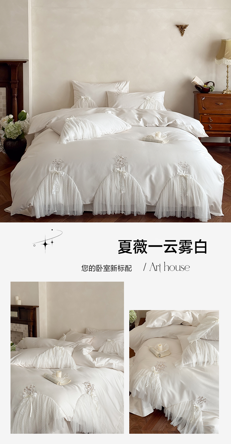(总)名品优仓 2026新款长绒棉50s全棉纯棉刺绣蕾丝轻纱四件套-夏薇,夏薇-公主粉,夏薇-梦幻紫,夏薇-清新绿,夏薇-云雾白