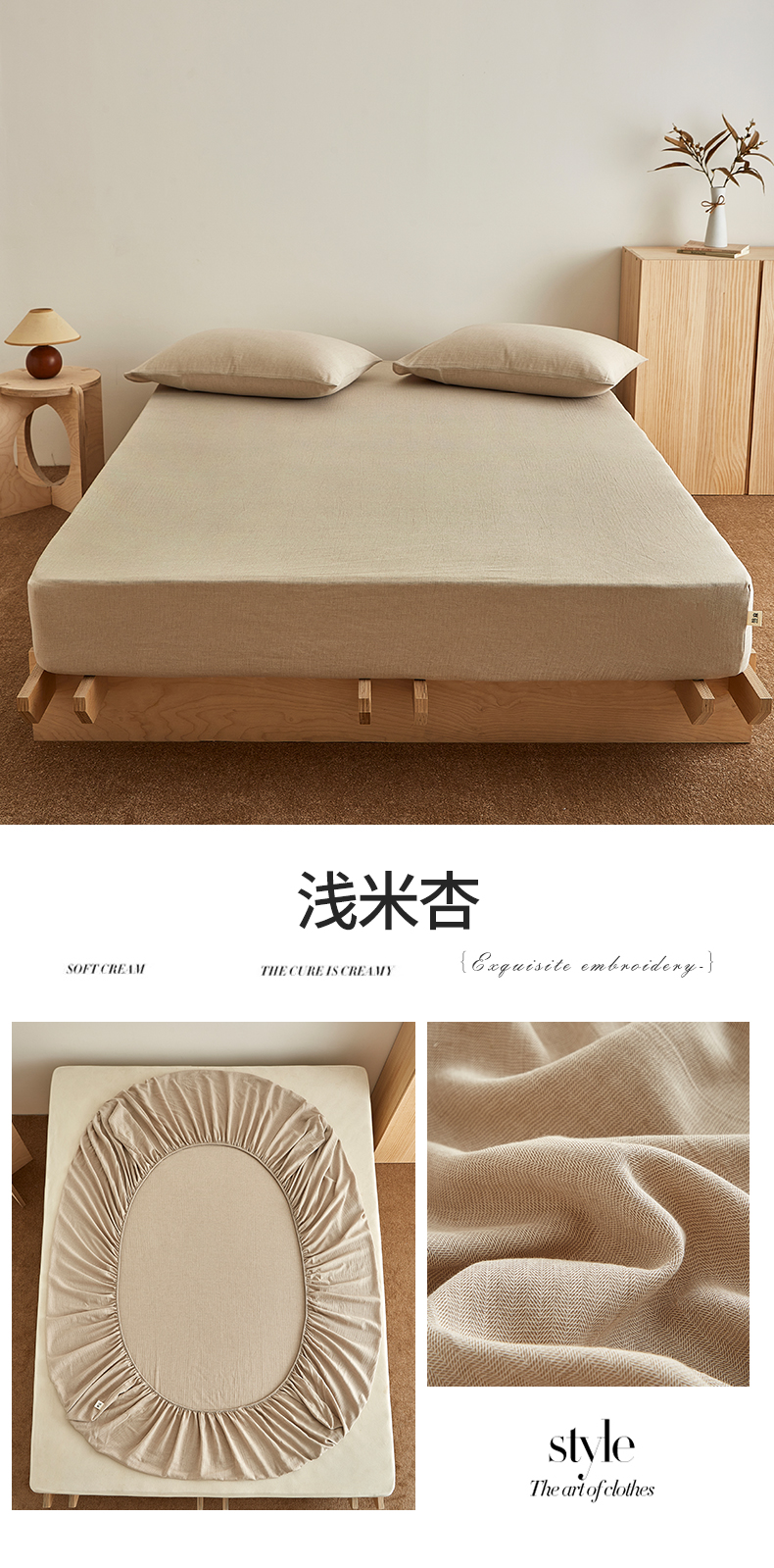 (总)优眠坊 2026新款简约色织水洗棉麻人字纹单品床笠单件床笠,组合图仅供展示不可下单,极光紫,摩卡棕,慕斯蓝,南瓜橘,暖沙色,浅米杏,时空灰,樱草绿