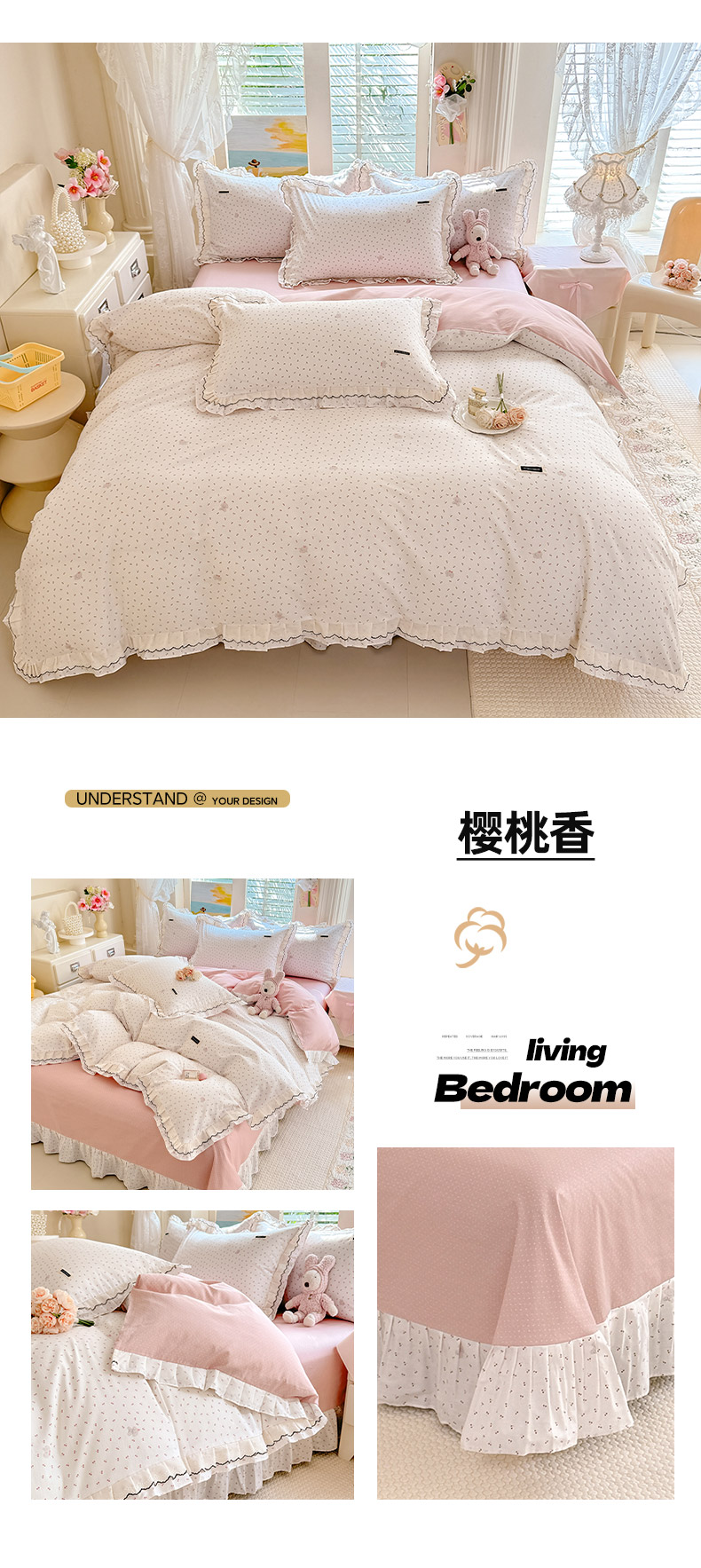 (总)艾唯希家纺 2026新款全棉双层花边工艺四件套-第二批,凝望,樱时-蓝紫,粉嫣花恋,桃霓-粉,云琳月影,艾菲妮,五月故事,樱桃香,樱时-粉