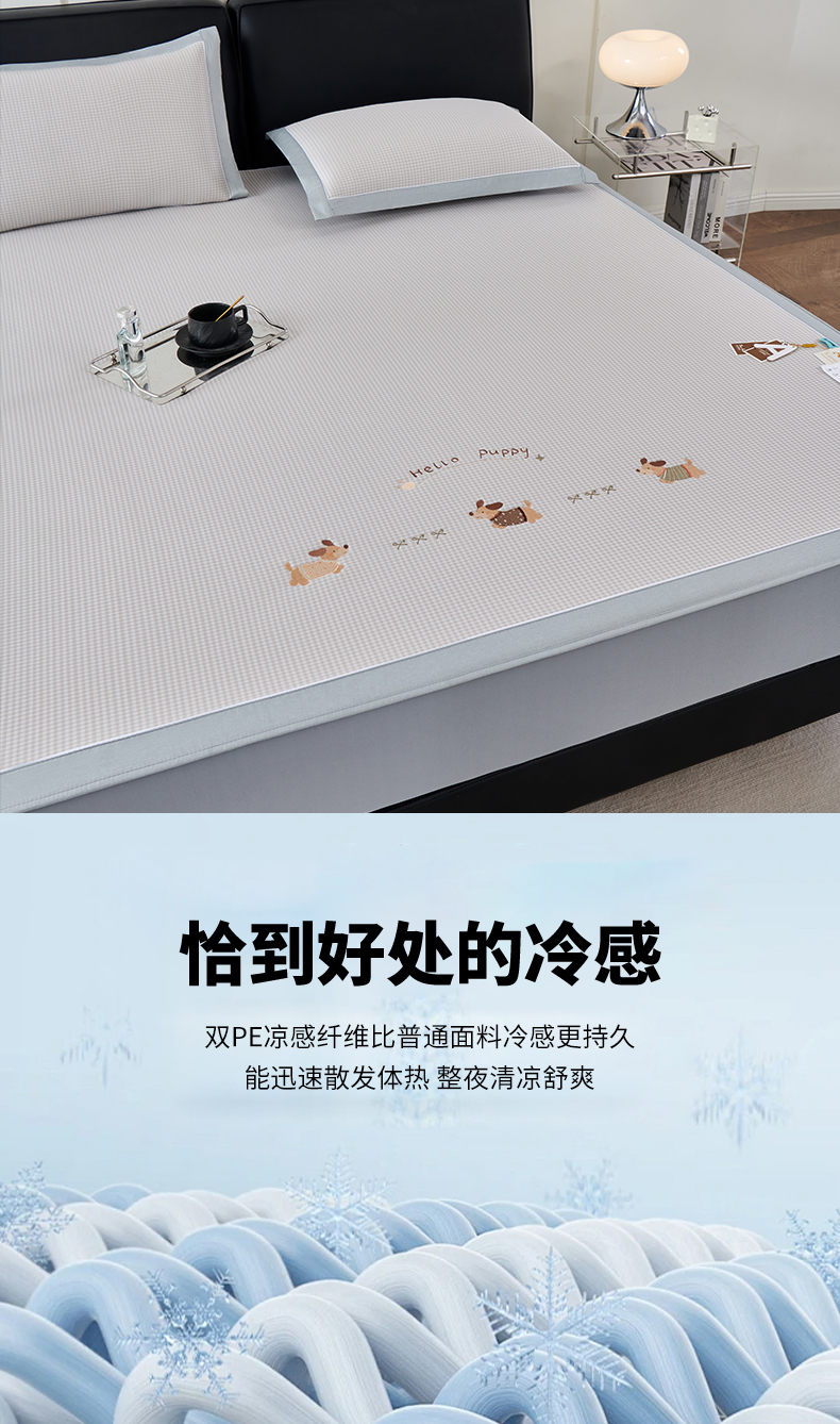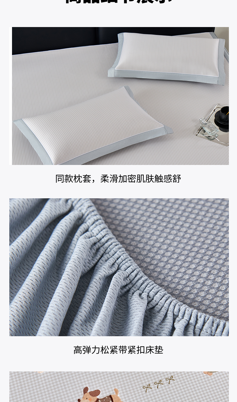 (总)小牛席业 2026新款PE凉感轻奢赫本提花冰丝席凉席席子(床笠款),粉色,灰色,蓝色,抹茶,香槟