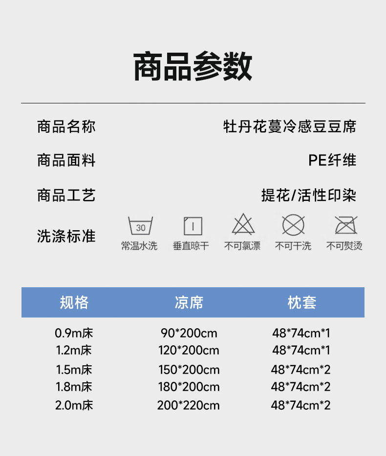 商品名称:小牛席业 2026新款牡丹花蔓冷感豆豆席凉席席子 牡丹花蔓-粉色
