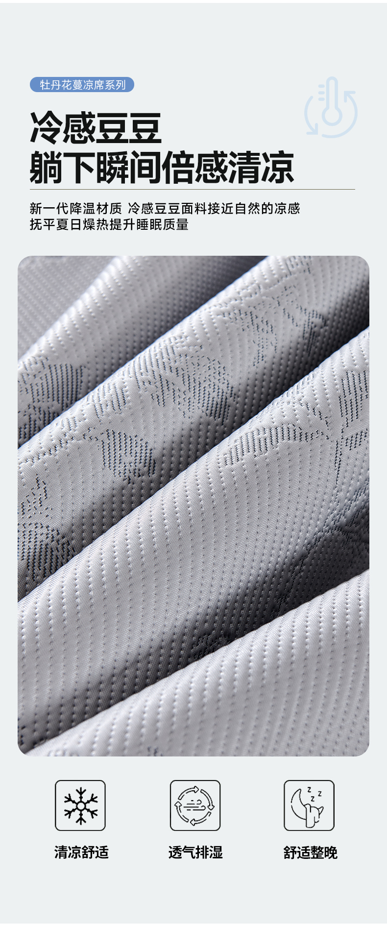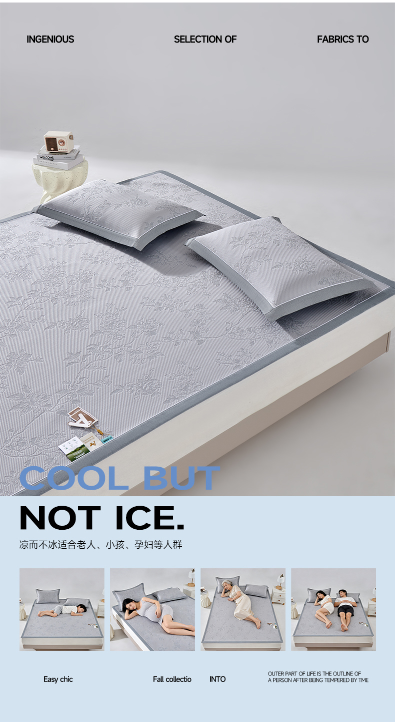 (总)小牛席业 2026新款PE凉感轻奢赫本提花冰丝席凉席席子,粉色,灰色,蓝色,抹茶,香槟