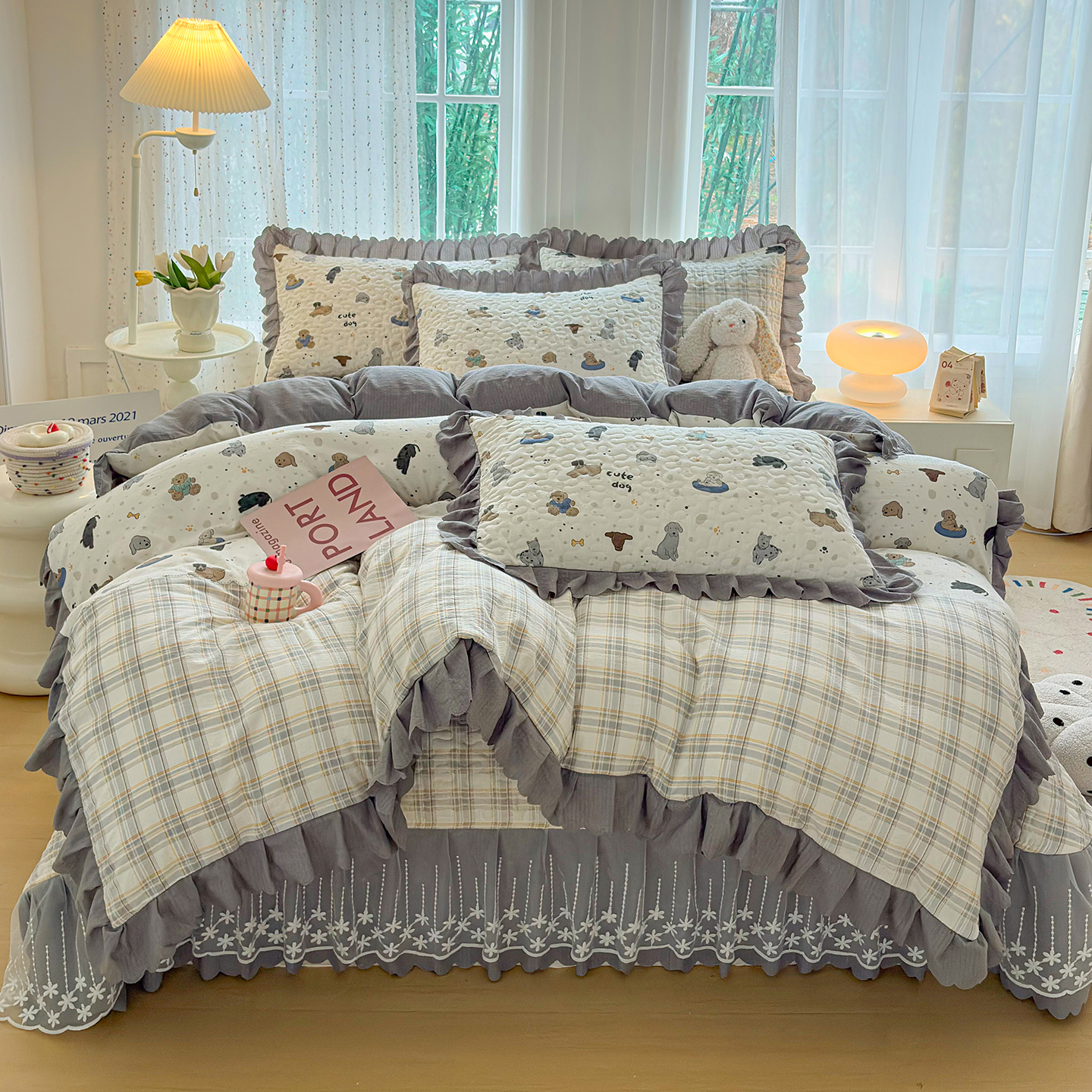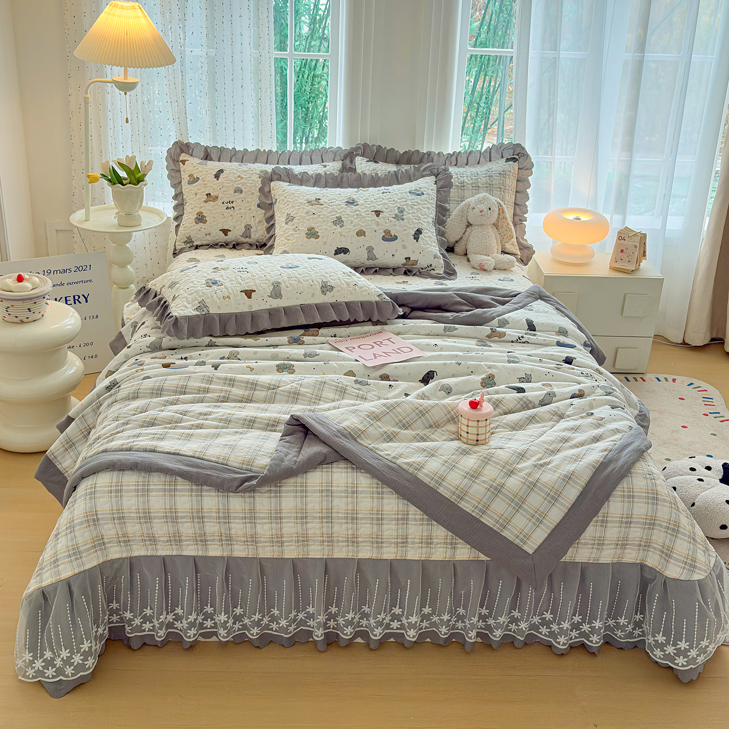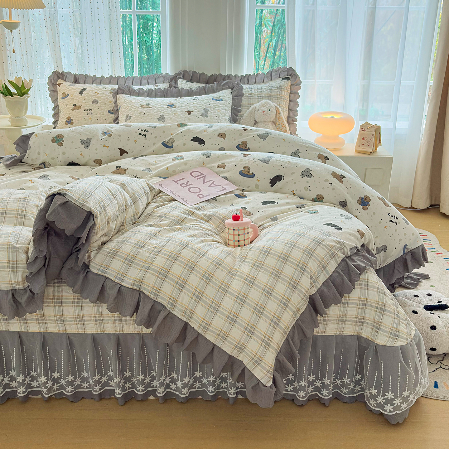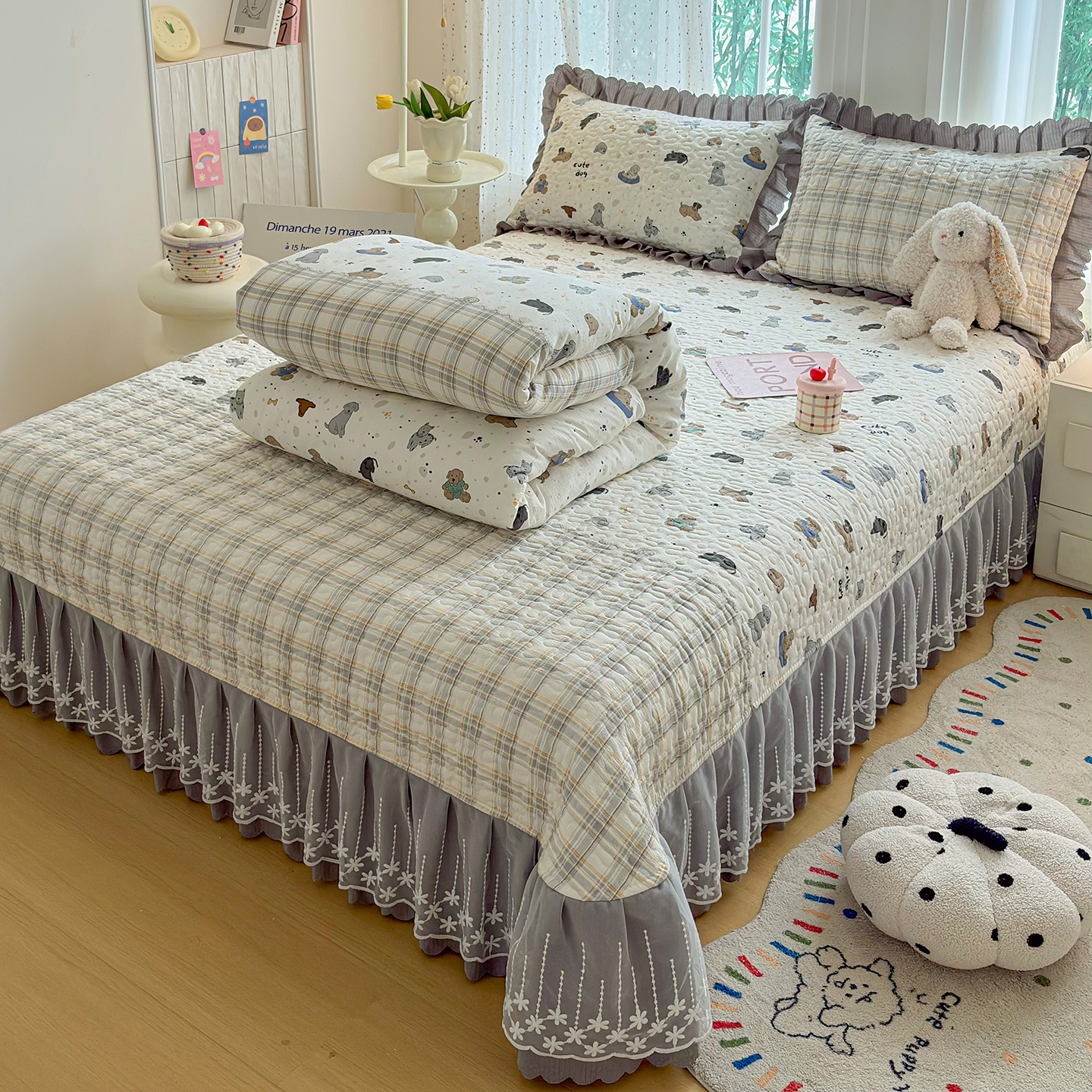 当前位置: 91家纺网 > 商品网购 > 床品套件 > 四件套 > 其它四件套 > 绒耀家纺 2026春夏直播爆款泡芙棉云感双层纱皱皱纱韩式花边床盖四件套 旺旺大队
