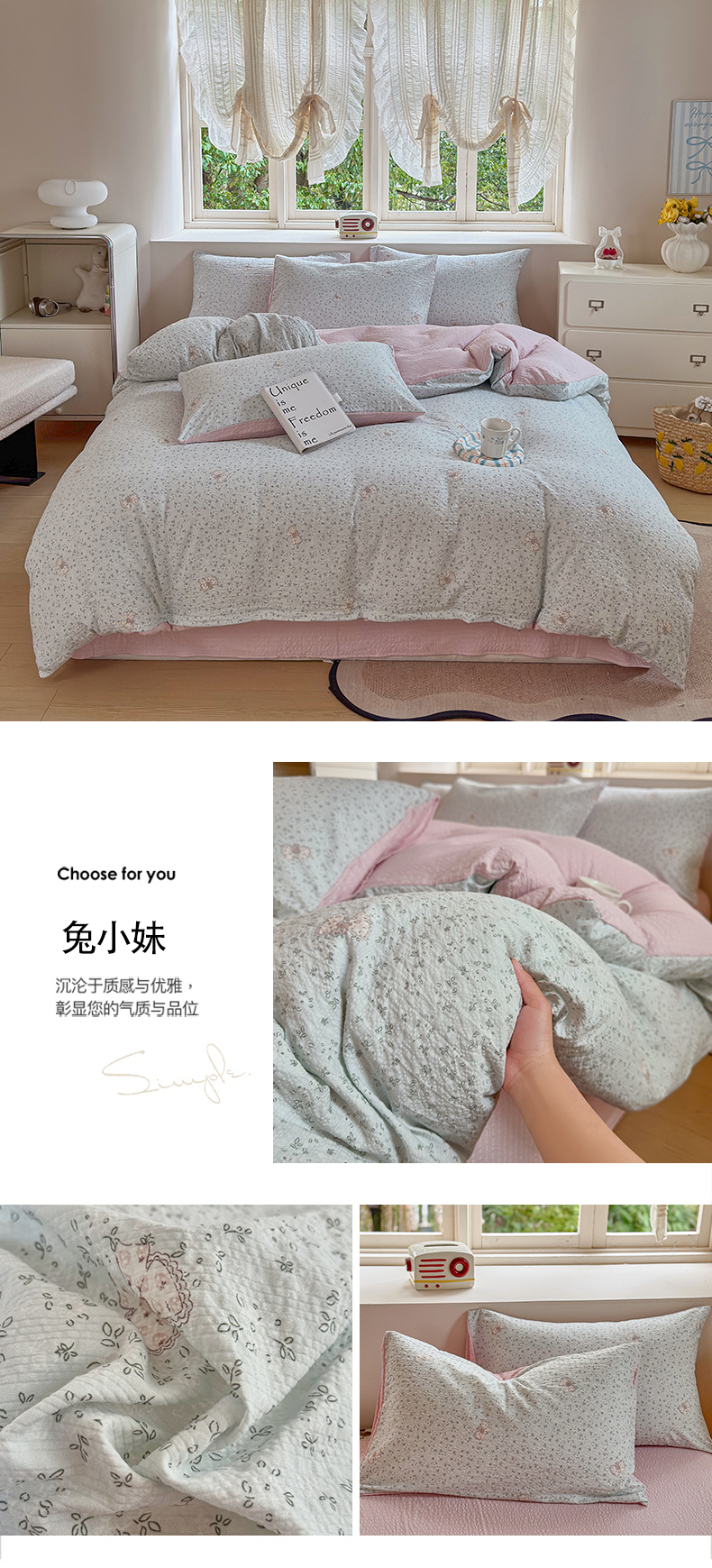 当前位置: 91家纺网 > 商品网购 > 床品套件 > 四件套 > 其它四件套 > 桔禾家纺 2026春夏新款小清新A类超柔泡芙棉泡泡纱双层纱四件套 碎花集
