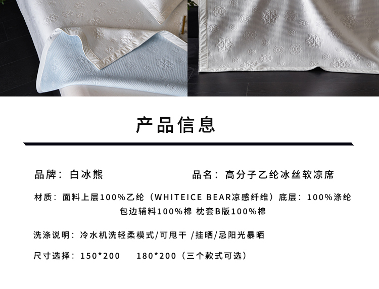 商品名称:(总)白冰熊乙纶高分子软凉席三件套 A类母婴级可机洗水洗 折叠