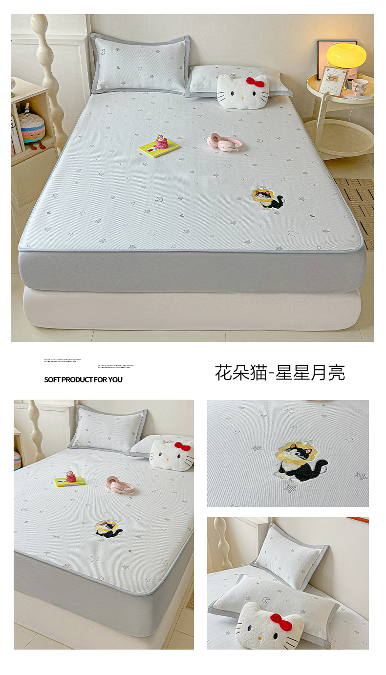 当前位置: 91家纺网 > 商品网购 > 床上用品 > 凉席 > 凉席套件 > 多乐家纺 2026新款星辰系列PE提花凉感豆豆卡通刺绣大包边复合凉席 小老虎-星星月亮-咖(床单款)