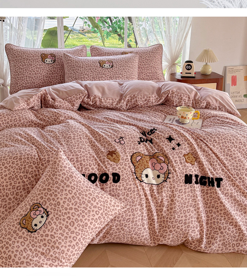(总)恋佳居 2026新款毛巾绣古法棉床笠床盖四件套,粉豹甜猫,格趣萌熊,花狮轻梦,花兔小叙,花野遇美,蓝酷豹猫,迷雾紫兔,软萌时光