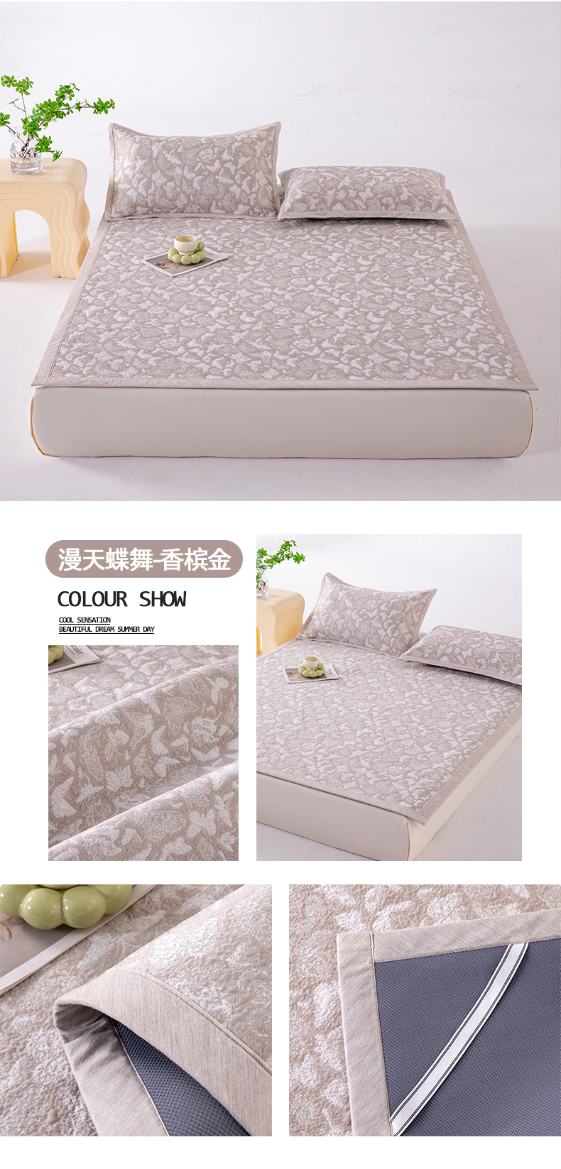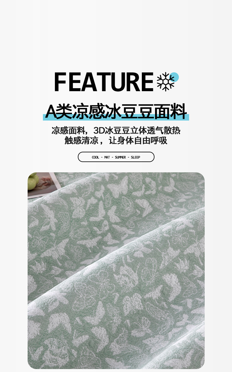 商品名称:(总)卡初家居(原微来) 2026新款A类凉感冰豆豆双面提花席-漫天蝶舞