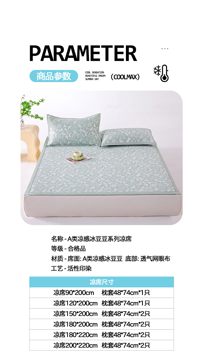 180x200cm单凉席+枕套一对(床笠款)