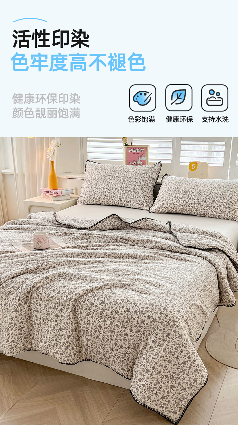 商品名称:锦尚坊被芯馆 2026新款100%棉花双层纱夏被新疆棉花空调被可机洗夏凉被绣边踩棉工艺 花海--灰
