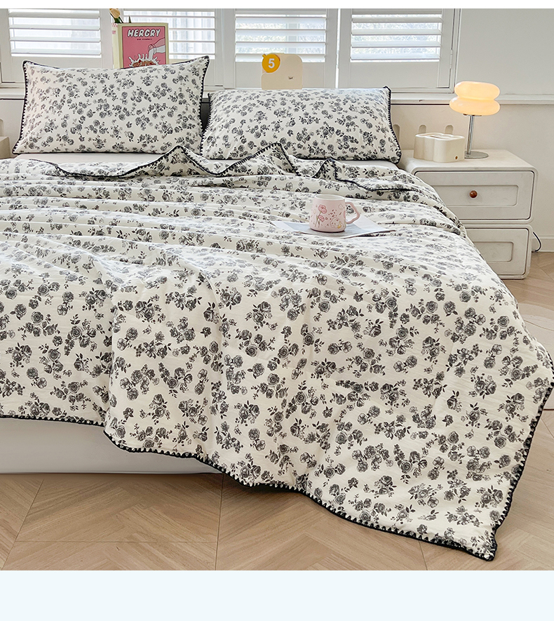 商品名称:阳光被业 2026新款100%棉花双层纱夏被新疆棉花空调被可机洗夏凉被绣边踩棉工艺 繁花似锦
