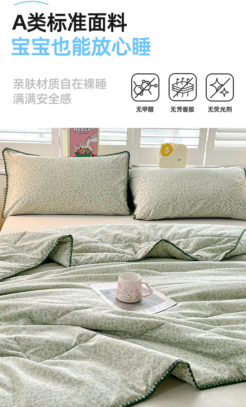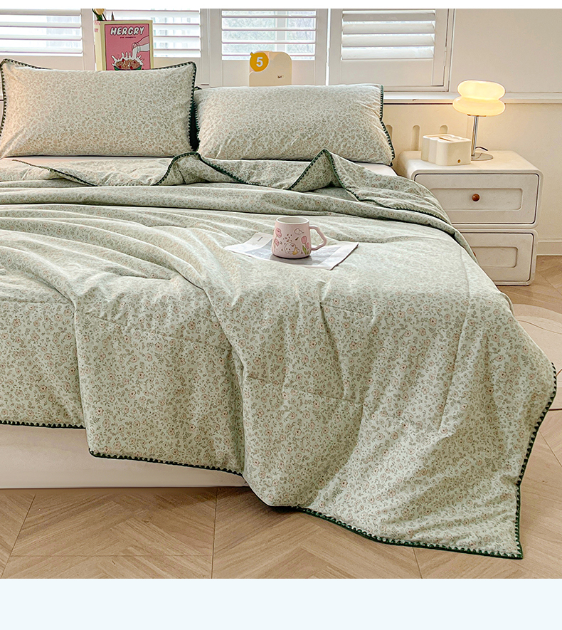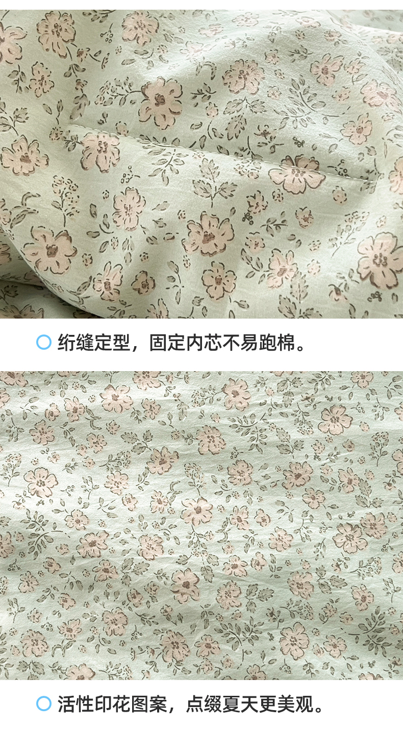 商品名称:阳光被业 2026新款100%棉花双层纱夏被新疆棉花空调被可机洗夏凉被绣边踩棉工艺 绿野花开