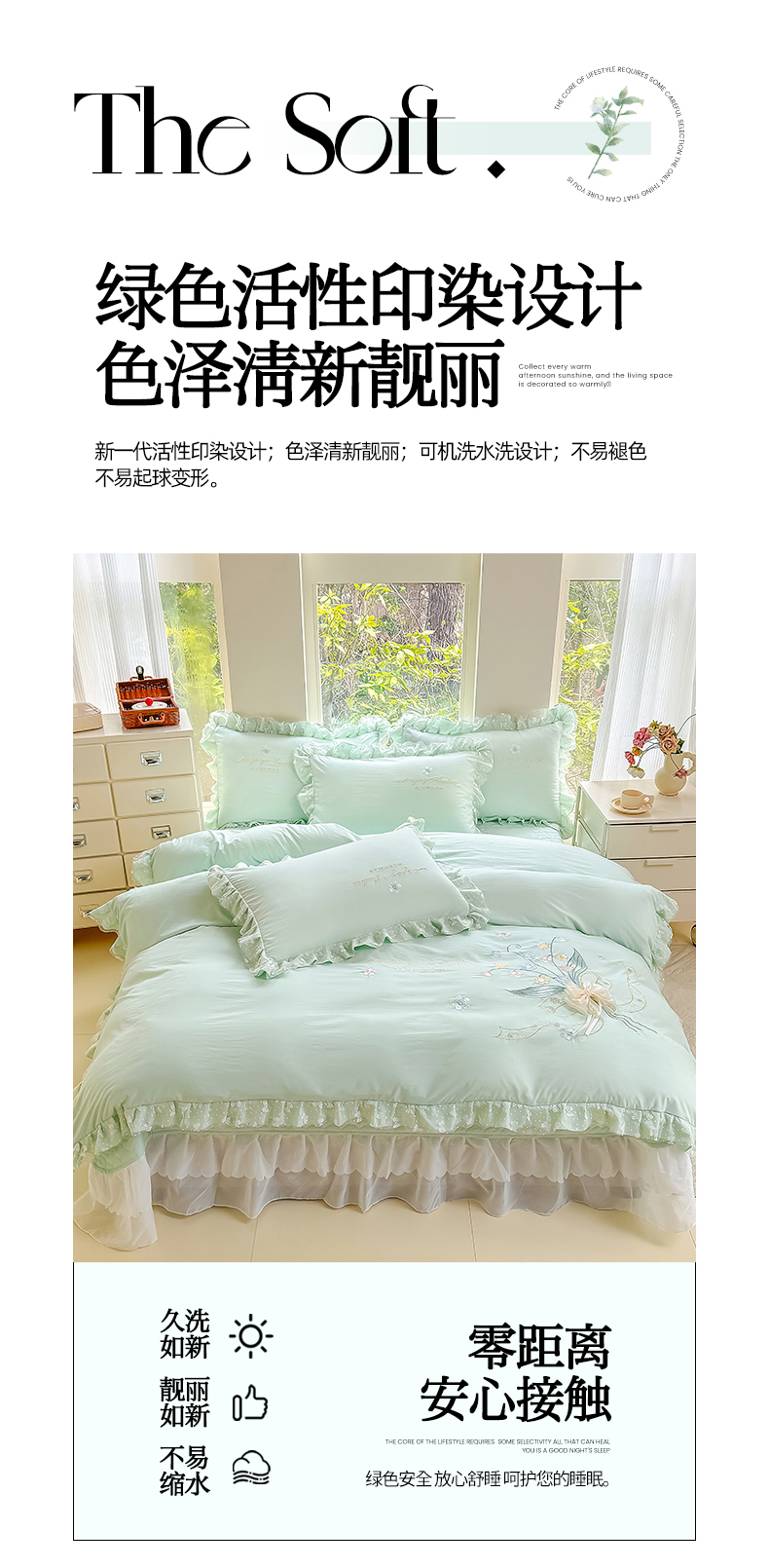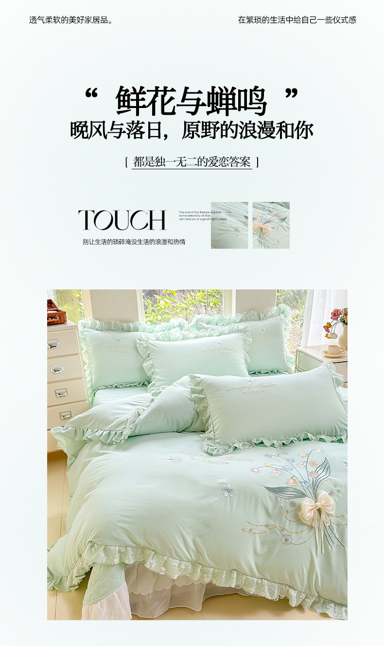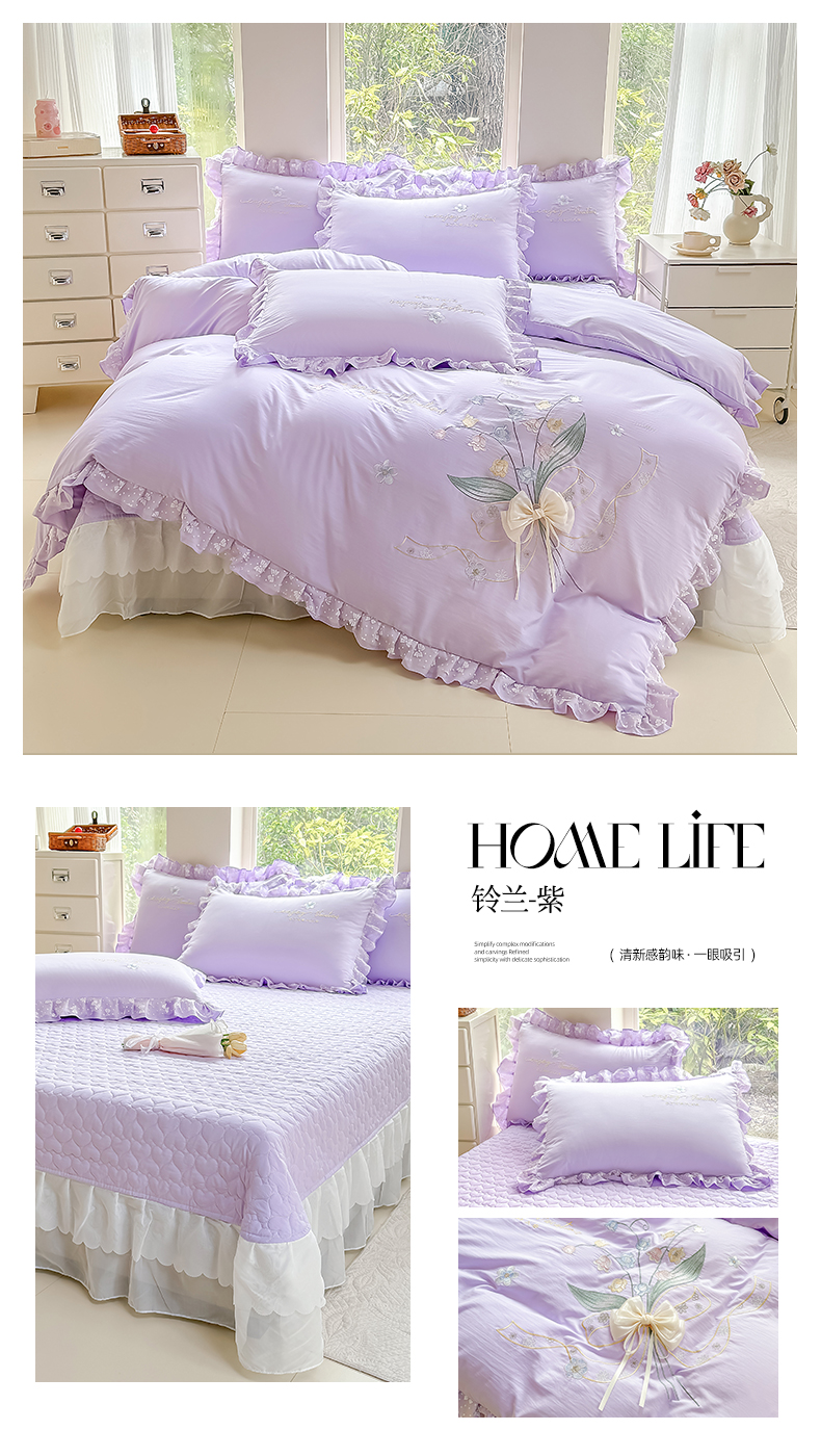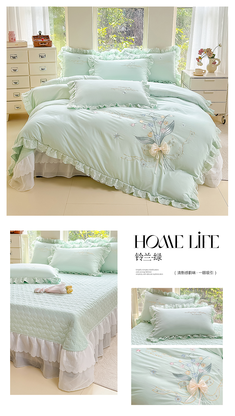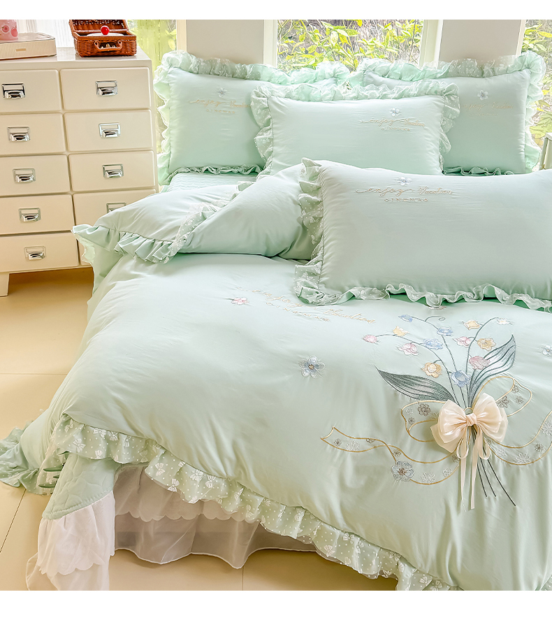 莉迪娅 2026新款A类糯小棉刺绣花边四件套-铃兰系列 铃兰-蓝