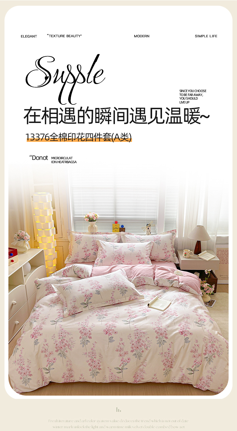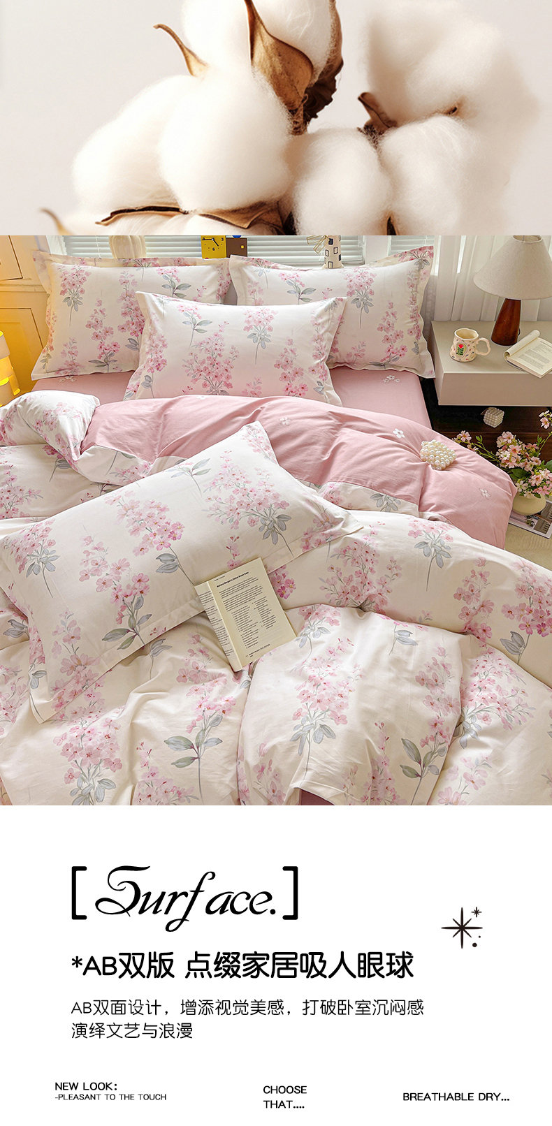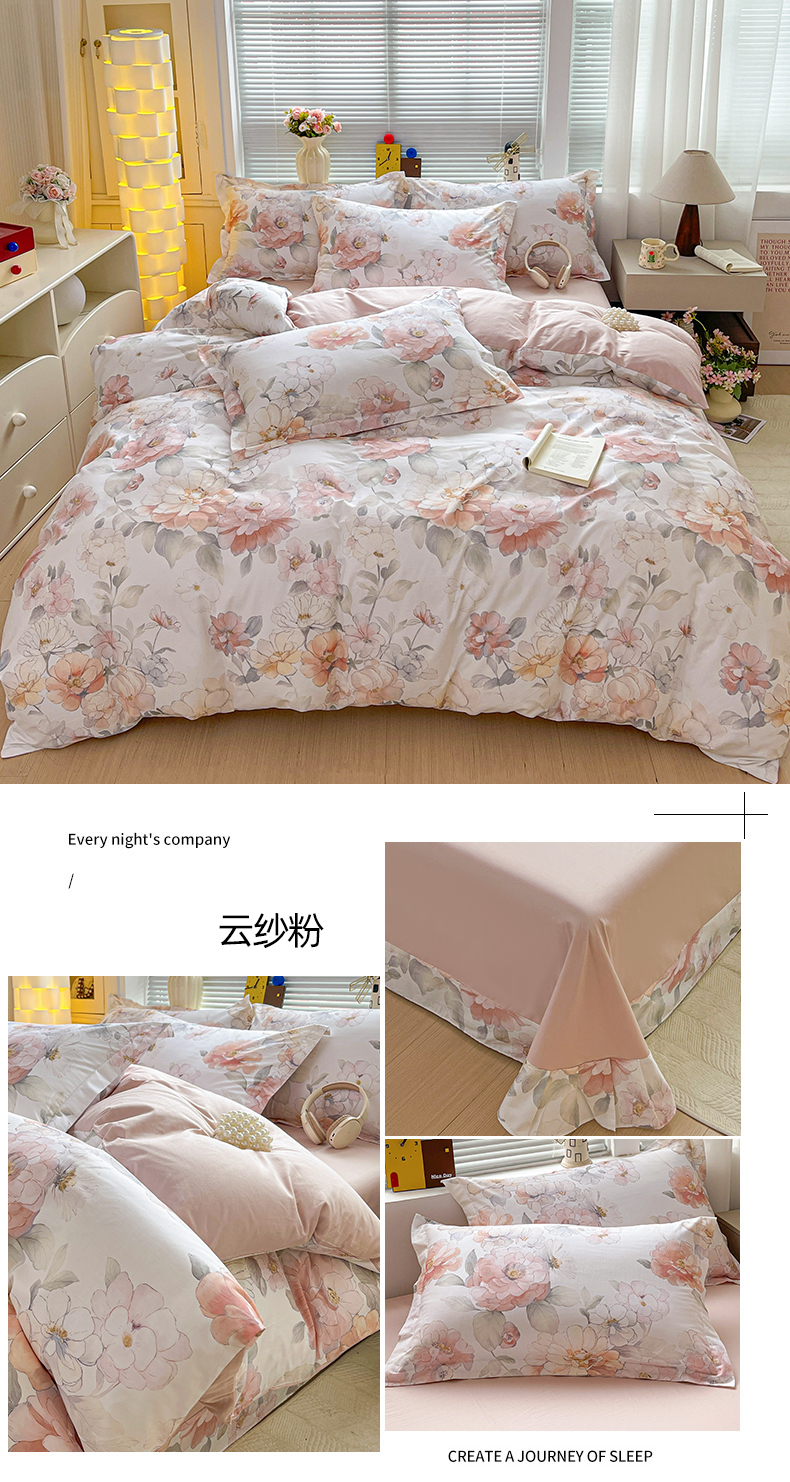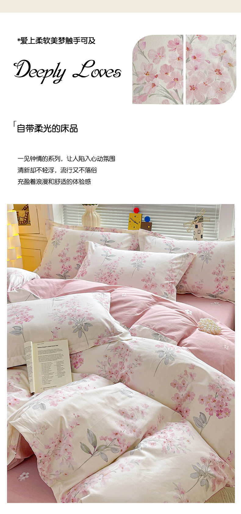 当前位置: 91家纺网 > 商品网购 > 床品套件 > 四件套 > 全棉普通四件套 > 大柏树 2026新款全棉纯棉13376印花四件套 花织梦粉