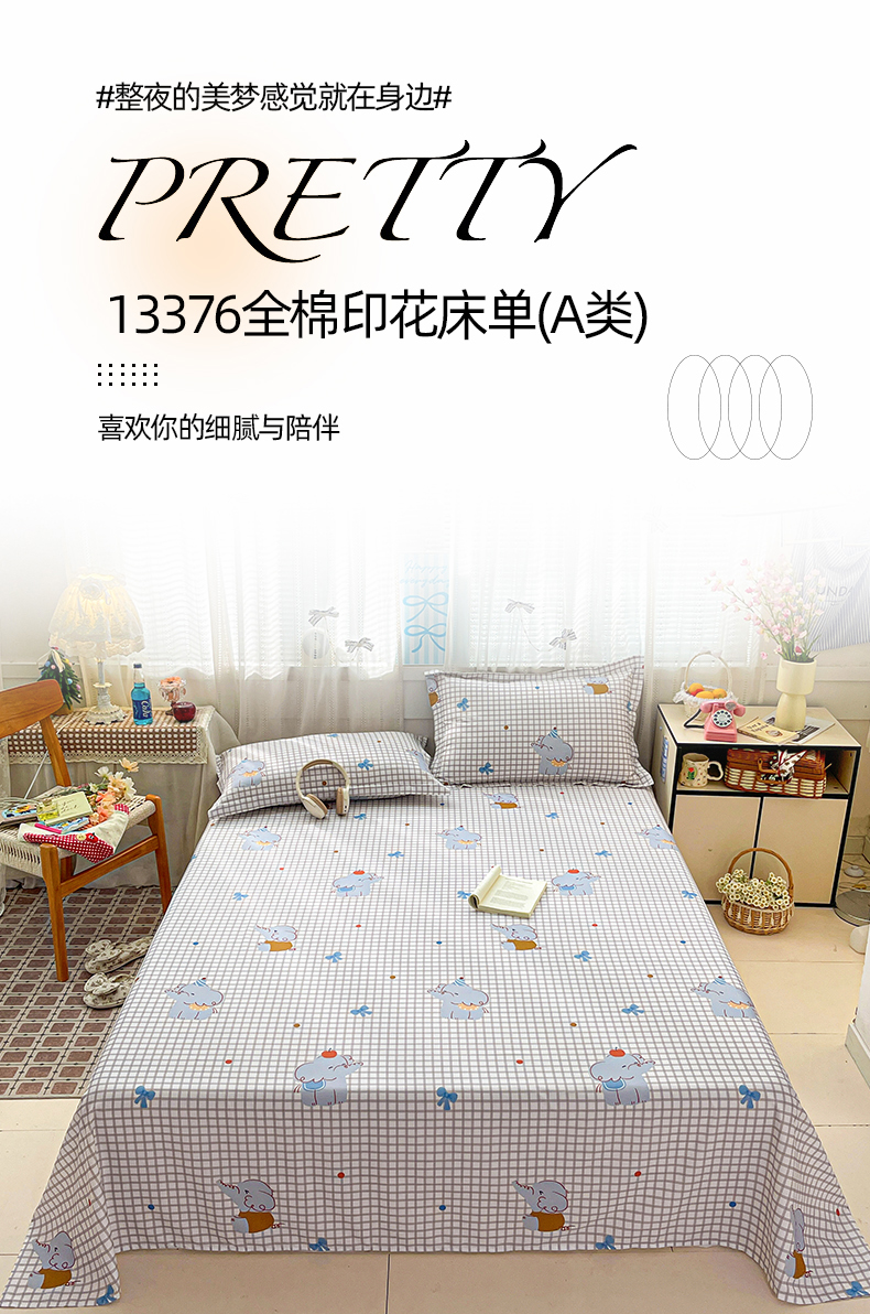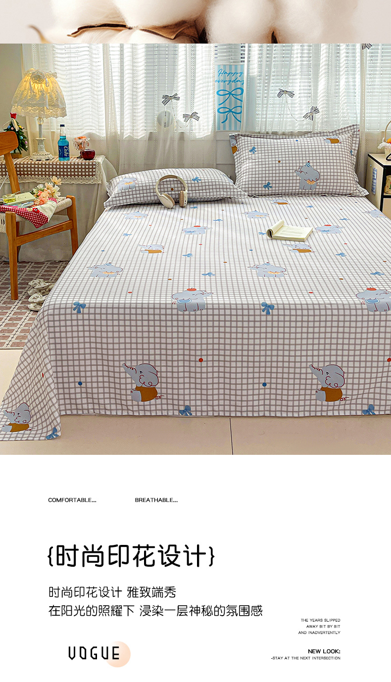 商品名称:大柏树 2026新款全棉纯棉13376印花单床单单品床单床单单件 活力小象