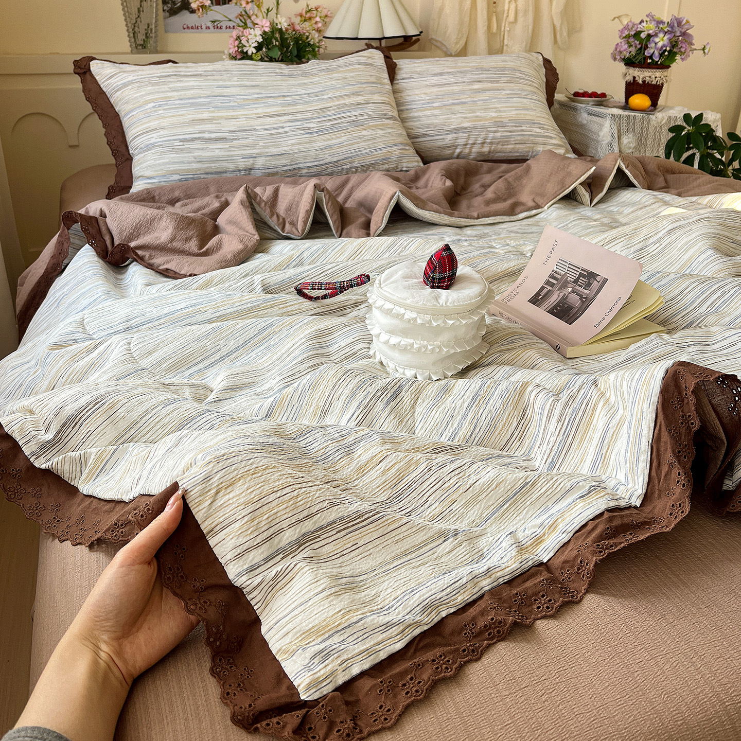 当前位置: 91家纺网 > 商品网购 > 床品套件 > 四件套 > 夏被四件套 > 瑞禾家纺 2026新款彩色花边木棉皱皱纱夏被四件套 赫本