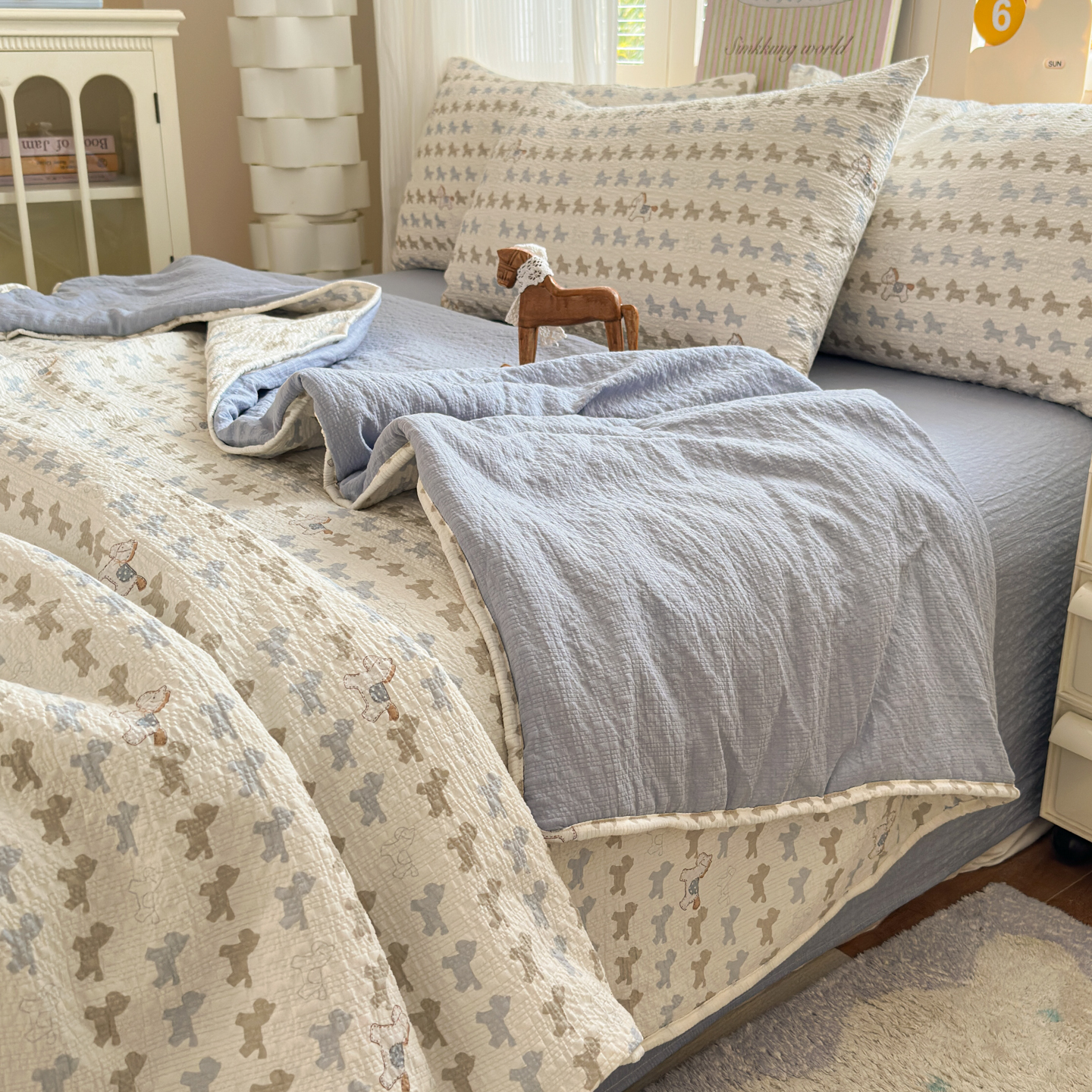 德比尔斯 2026新款泡芙棉夏被四件套包边款 小马派对