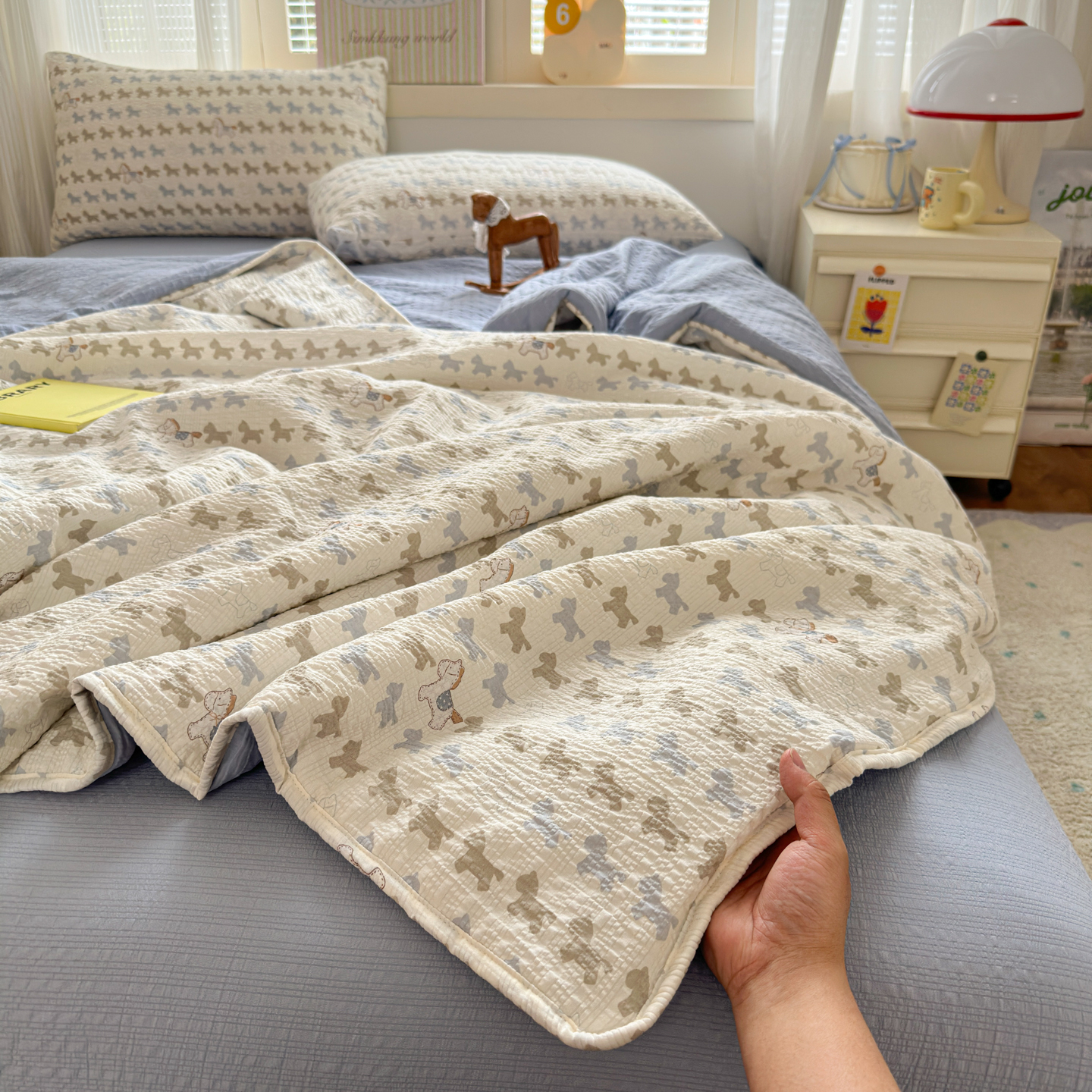 (总)德比尔斯 2026新款针织双层纱单夏被夏被四件套,春意,花季绿,花沐,咖茵,恐龙,蓝茵,奶油啵啵,素雅,心沫灰,樱桃咖,丁香紫
